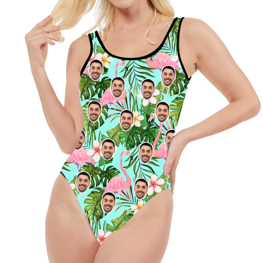 (Tax Included) Custom Face Tropical One-Piece Swimsuit Sexy Athletic Summer Beachwear With Unique Personalized Print Design