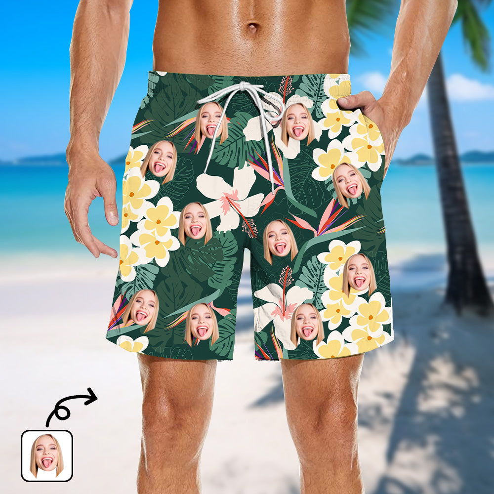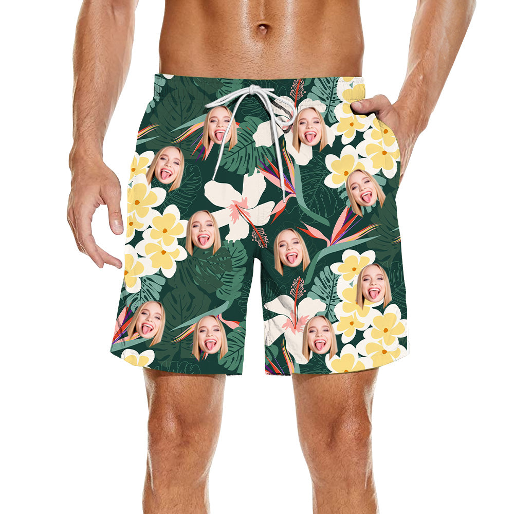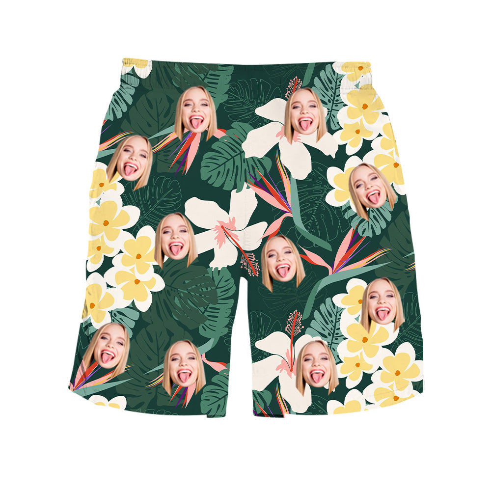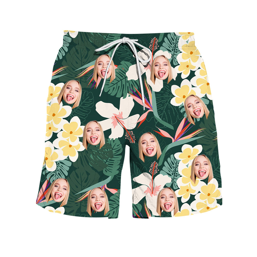 - Either to get a smile out of you or to use every day, you are going to love our custom beach shorts with photo. They are made with the best material and super soft you will enjoy wearing. Customize your beach shorts with your favorite photo face and make the perfect gift! Make the perfect beach shorts for family and friends that they will never forget about.