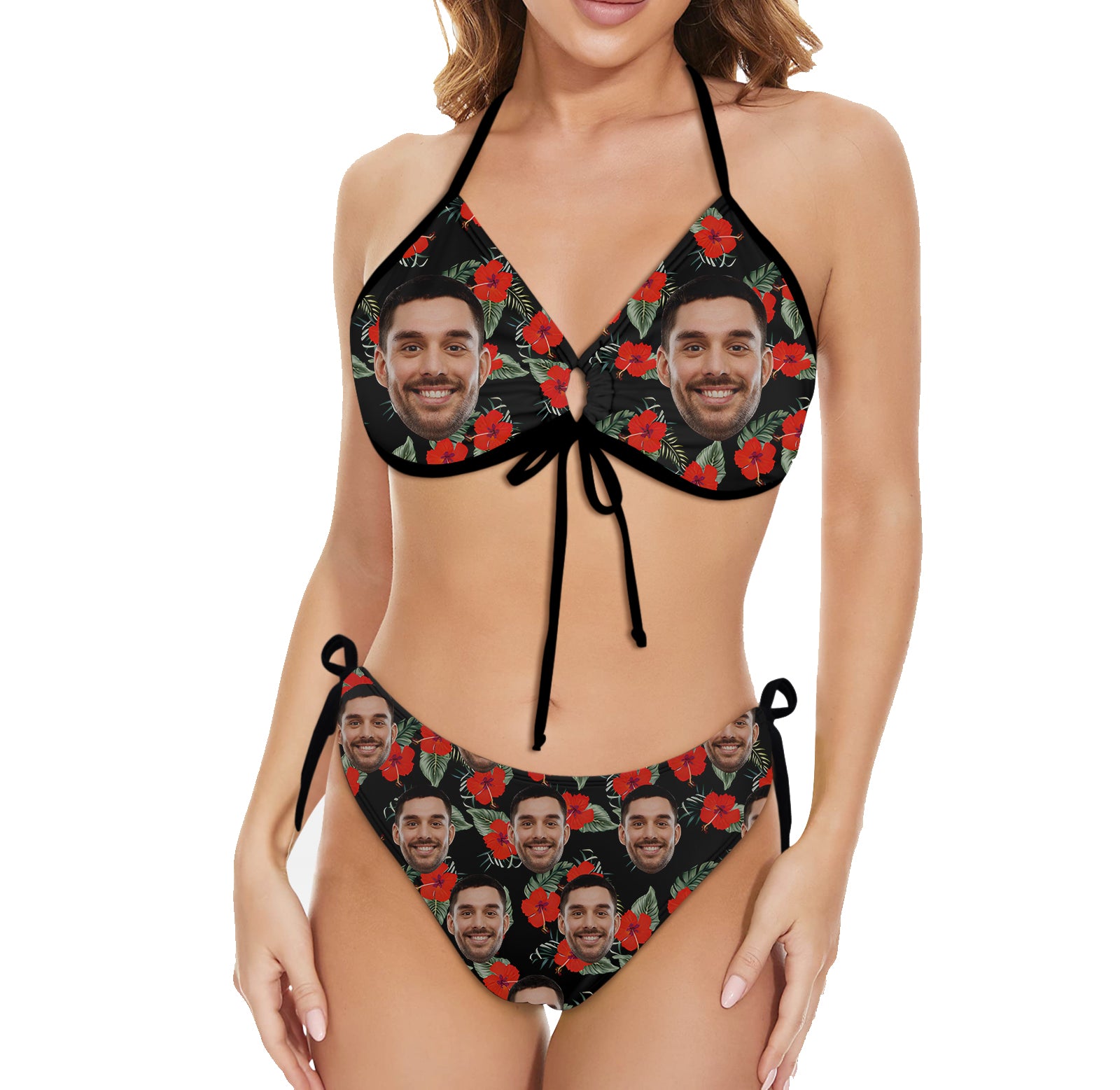 (Tax Included) Customized Women's Two-Piece Swimsuit Halter Neck Bikini Customized Boyfriend Face Bathing Suit