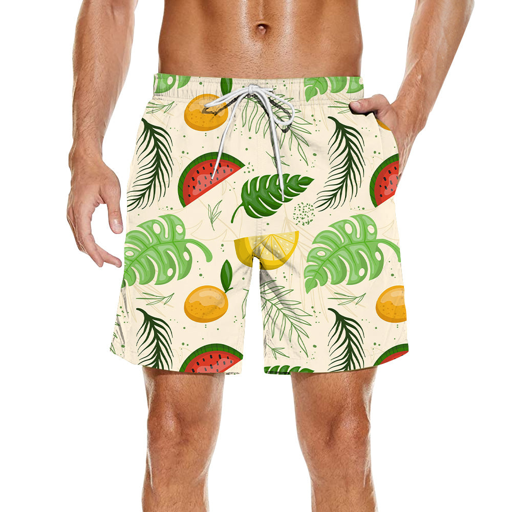 (Tax Included) Fruit & Palm Leaf Print Beach Shorts Custom Face