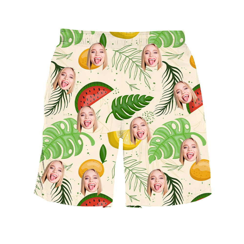 - Either to get a smile out of you or to use every day, you are going to love our custom beach shorts with photo. They are made with the best material and super soft you will enjoy wearing. Customize your beach shorts with your favorite photo face and make the perfect gift! Make the perfect beach shorts for family and friends that they will never forget about.