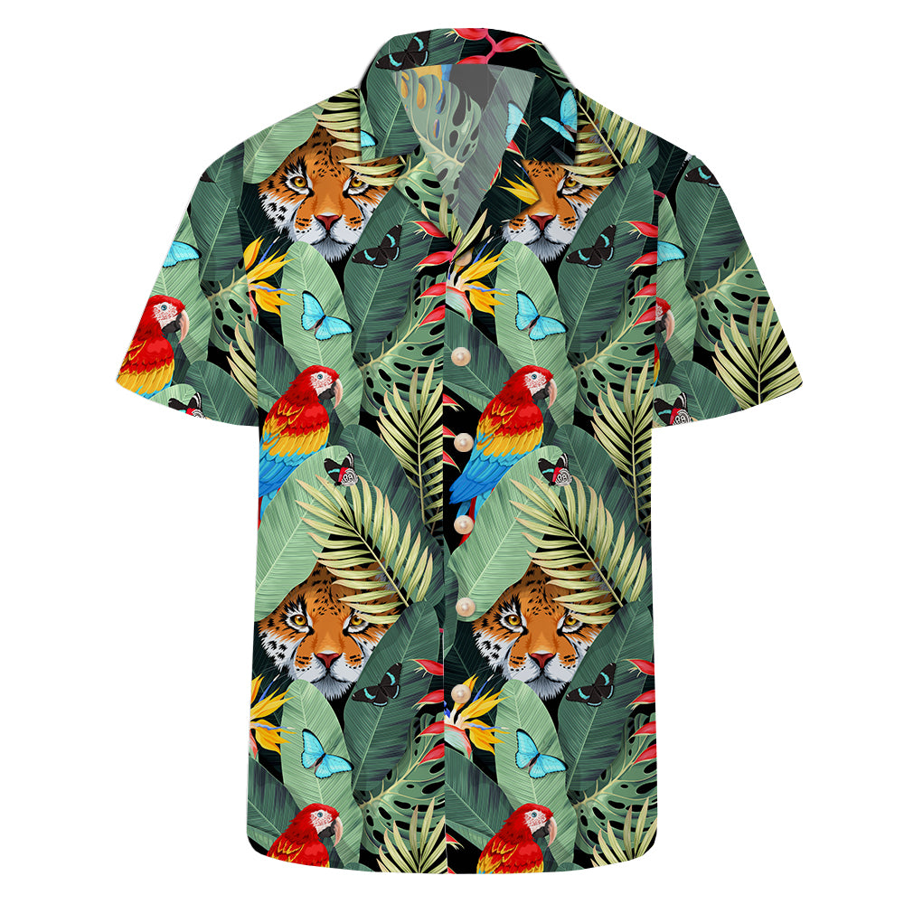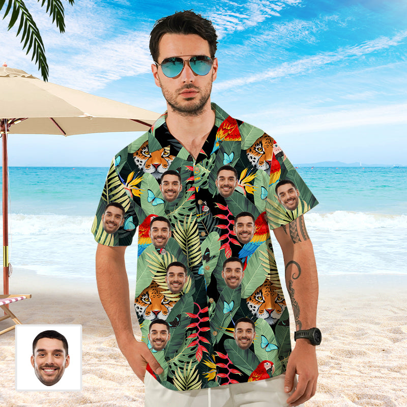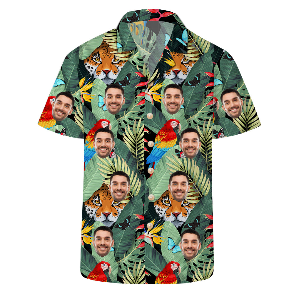 (Tax Included) Men's Beach Shirts Colorful Tropical Plants And Animals Sportswear Customizable Faces