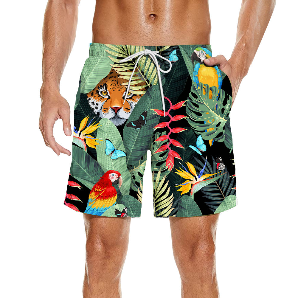 (Tax Included) Men's Beach Shorts Colorful Tropical Plants and Animals Sweatpants Customizable Faces