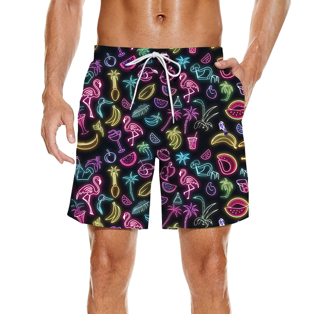 (tax Included) Men's Beach Shorts Neon Party Sweatpants Hawaiian Sweatpants Custom Face