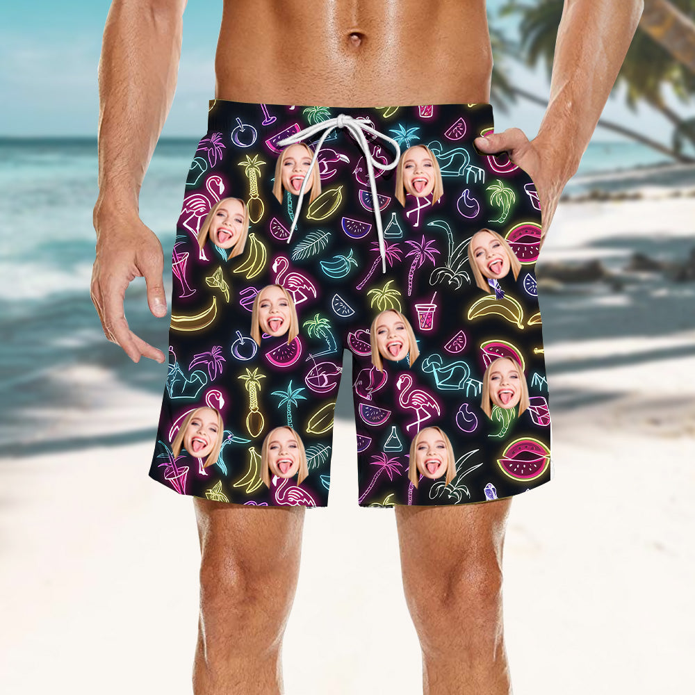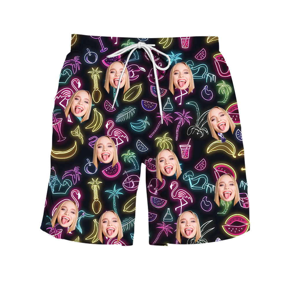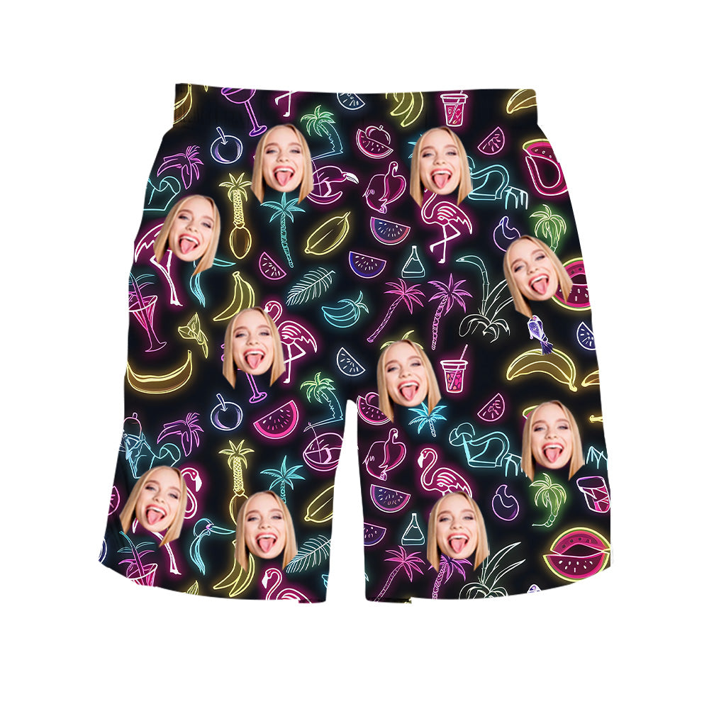 - Either to get a smile out of you or to use every day, you are going to love our custom beach shorts with photo. They are made with the best material and super soft you will enjoy wearing. Customize your beach shorts with your favorite photo face and make the perfect gift! Make the perfect beach shorts for family and friends that they will never forget about.