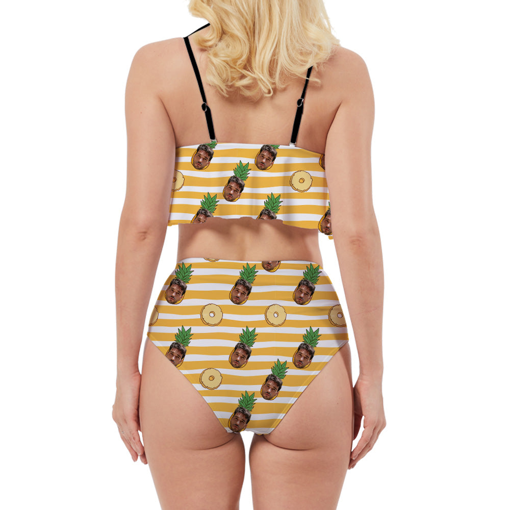 (Tax Included) Personalized Custom Face Tankini Unique Striped Summer Beach Swimsuit