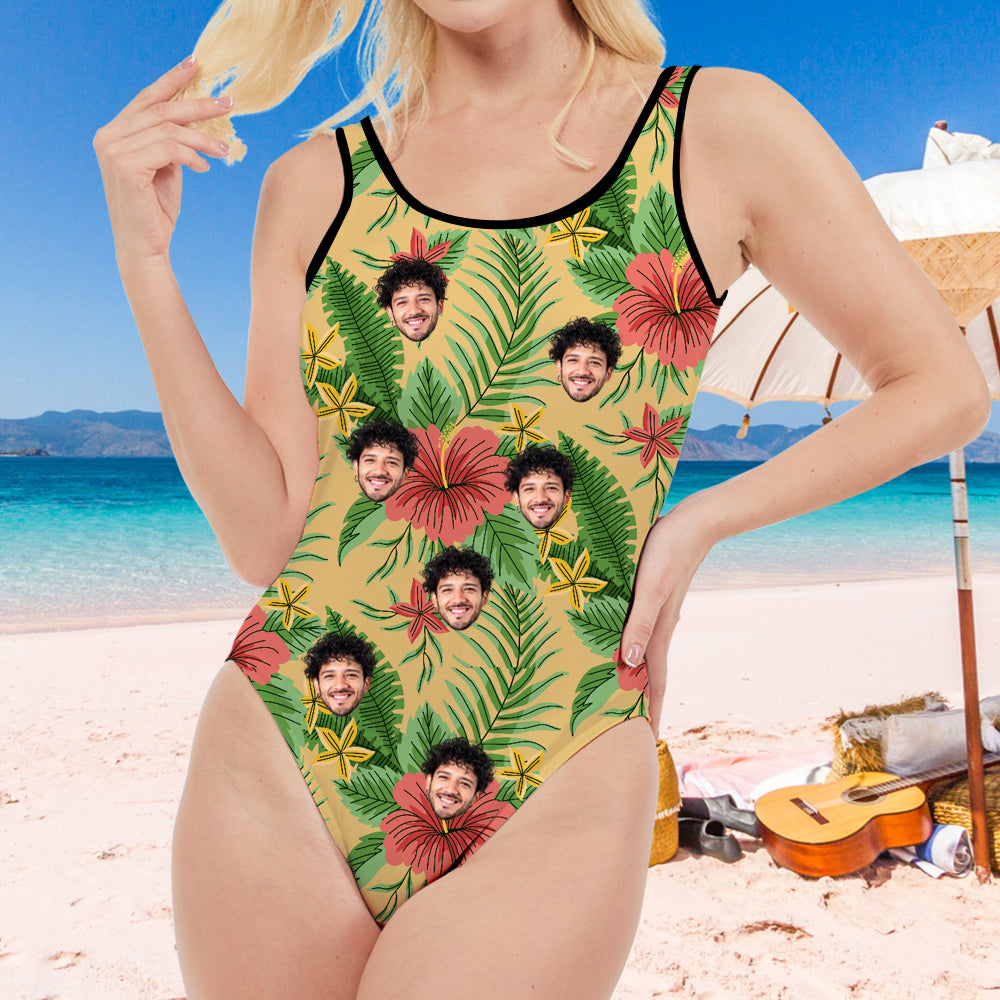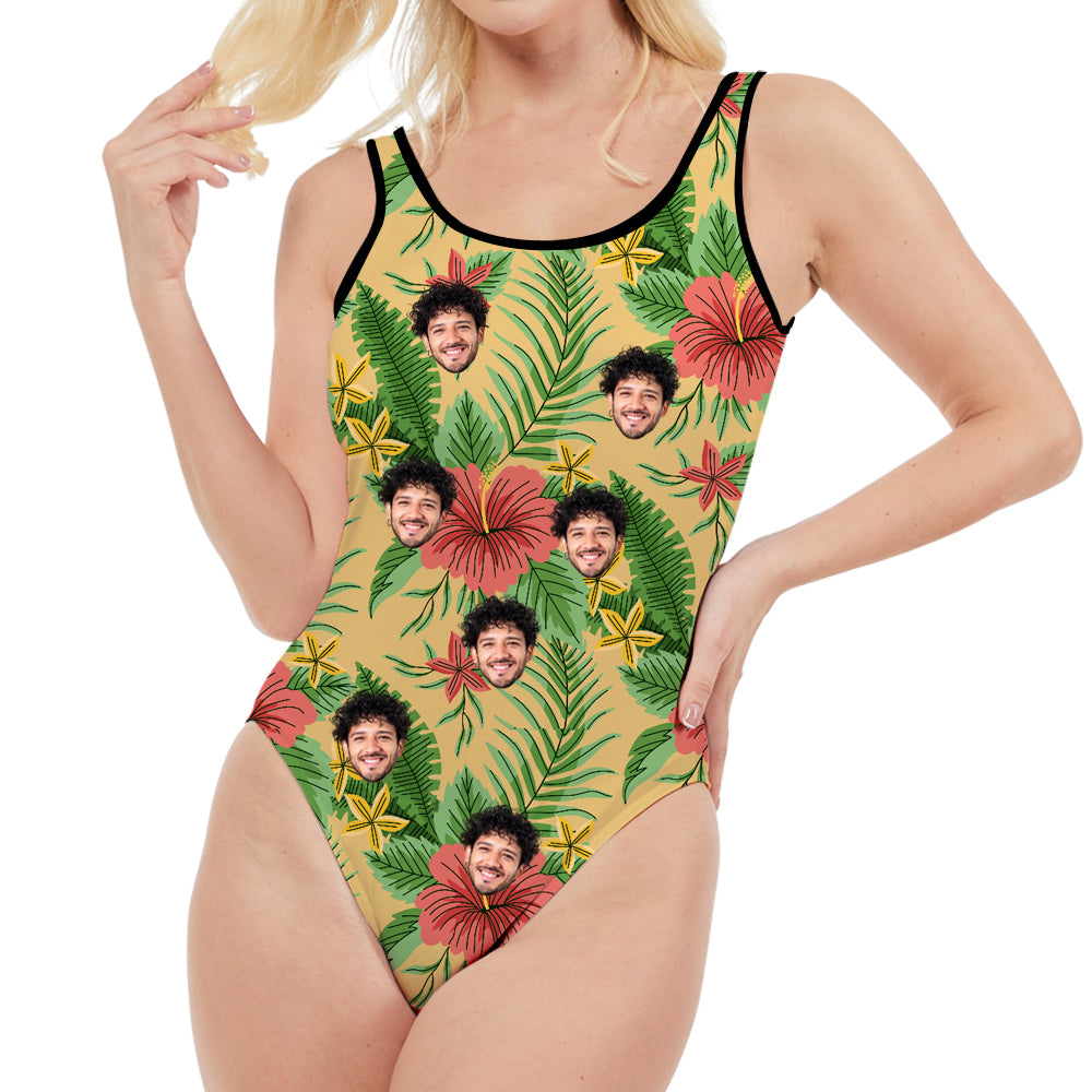 (Tax Included) Tropical Flowers Women's Customized Swimsuits Upload Photos for Customization One-piece Swimsuits