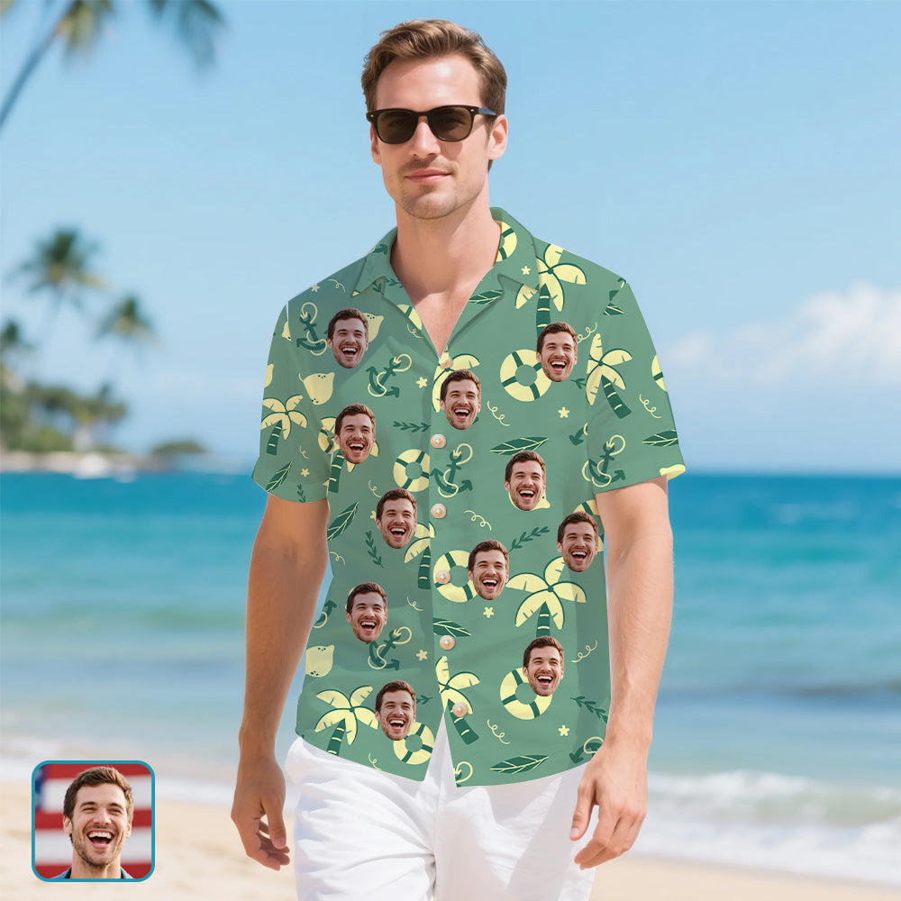 (Tax Included) Your Face Under Palms: Vibrant Resort Shirt Design