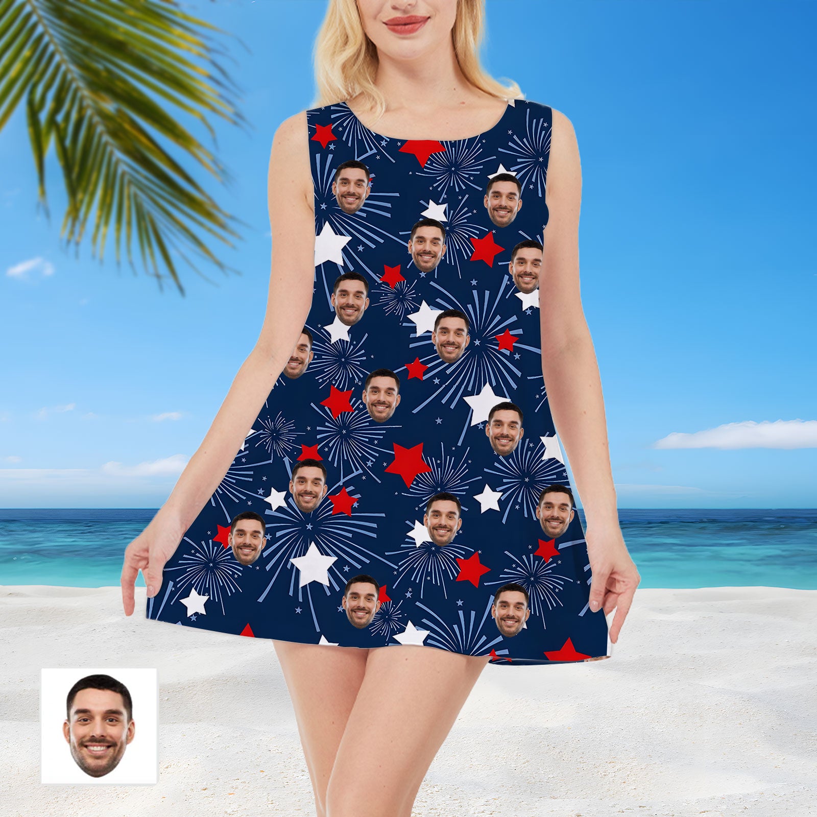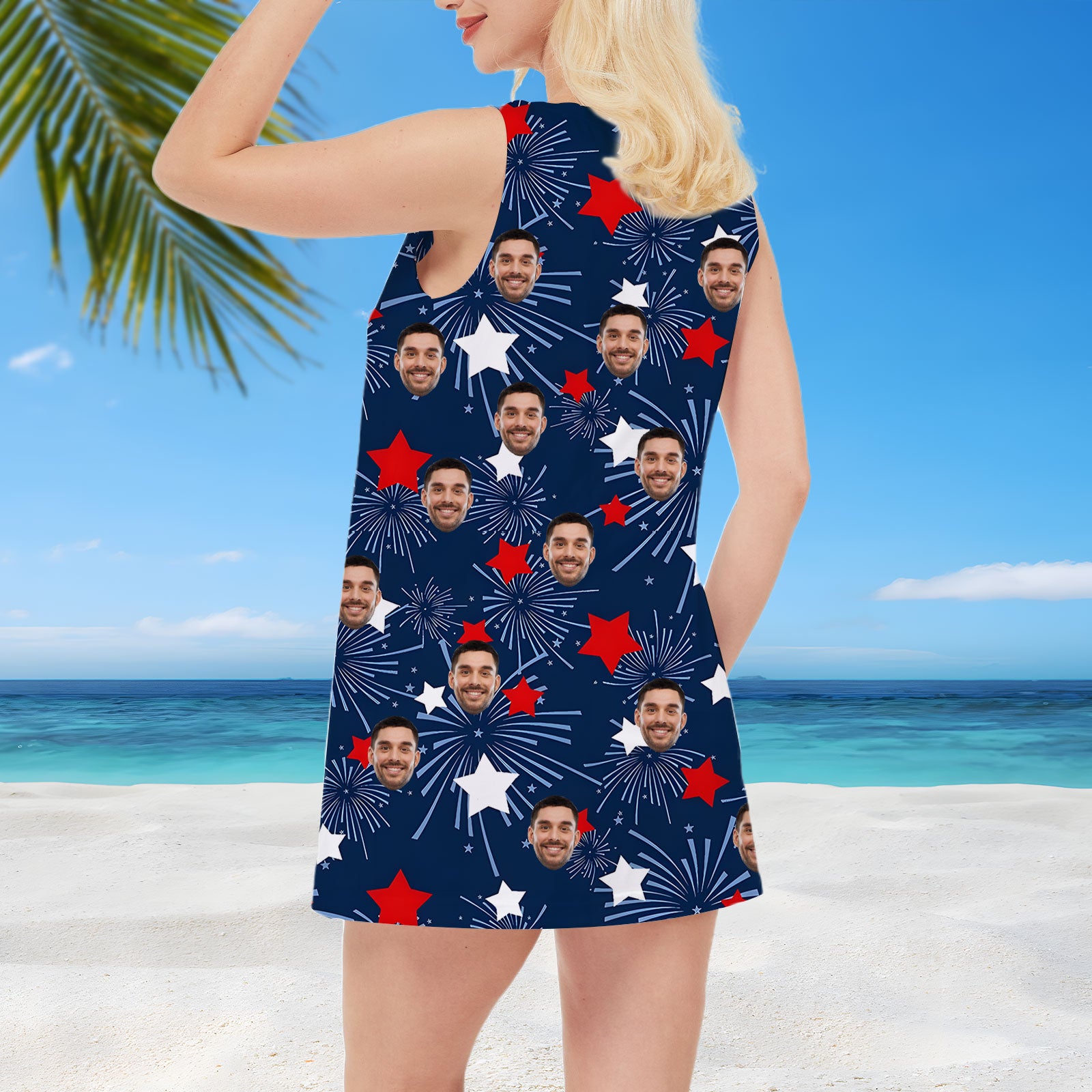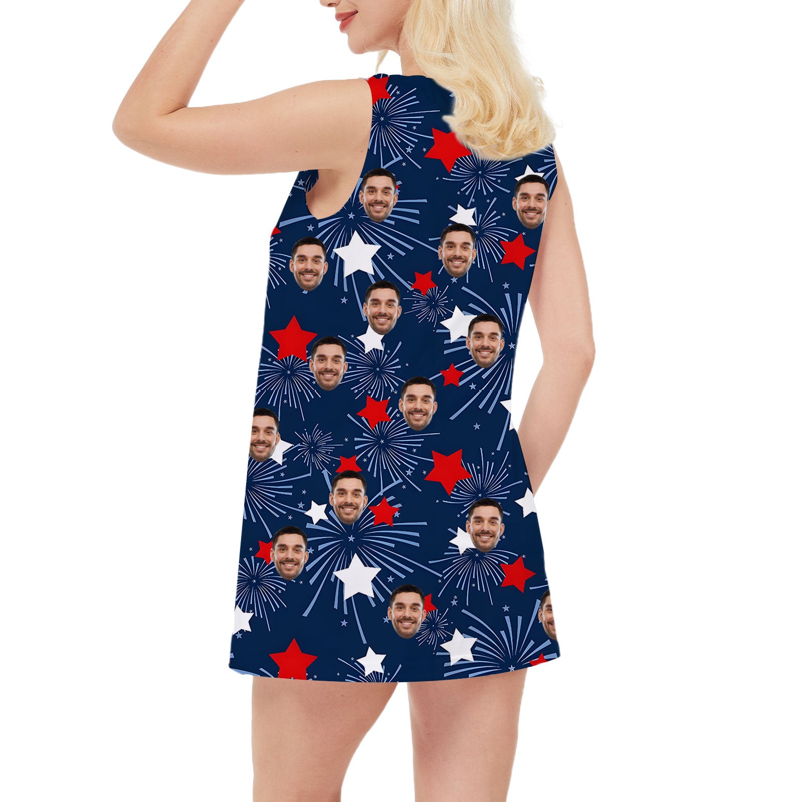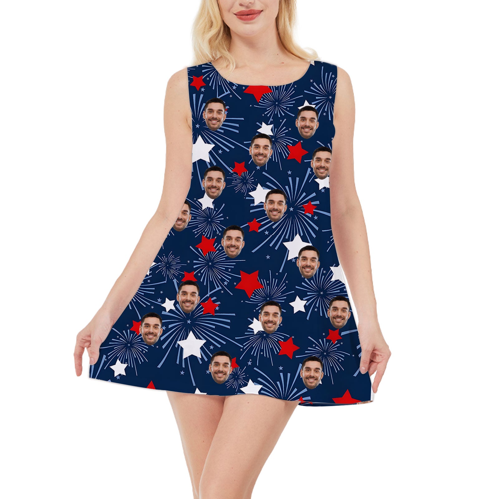 Unique Custom Face Patriotic Dress Personalized American Flag Summer Dress