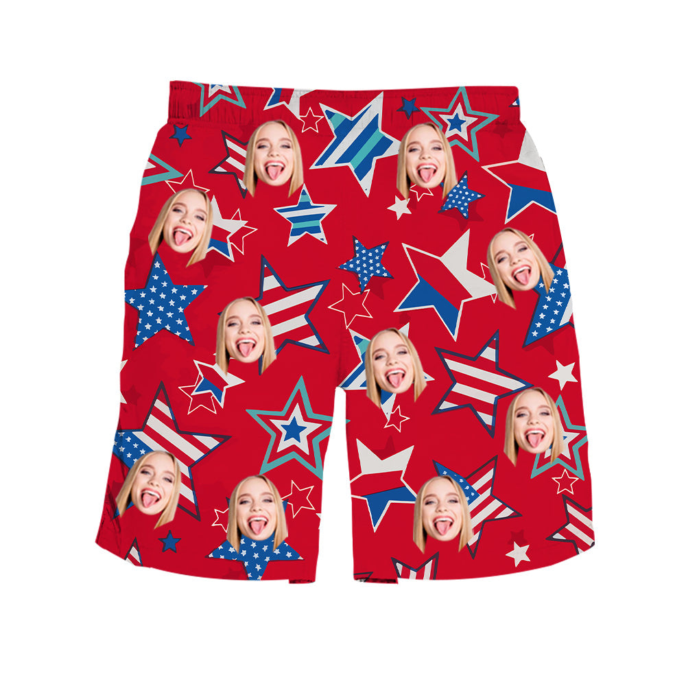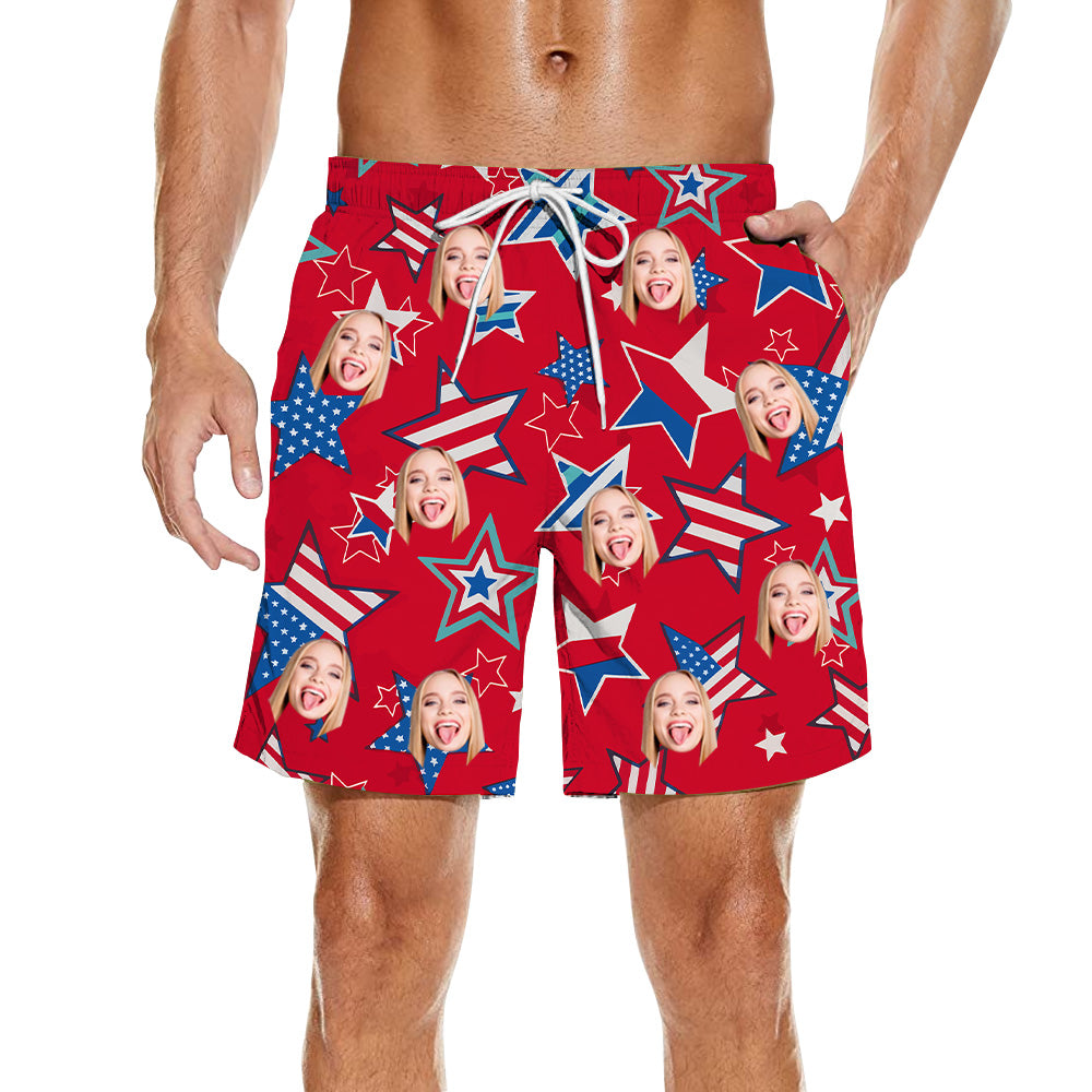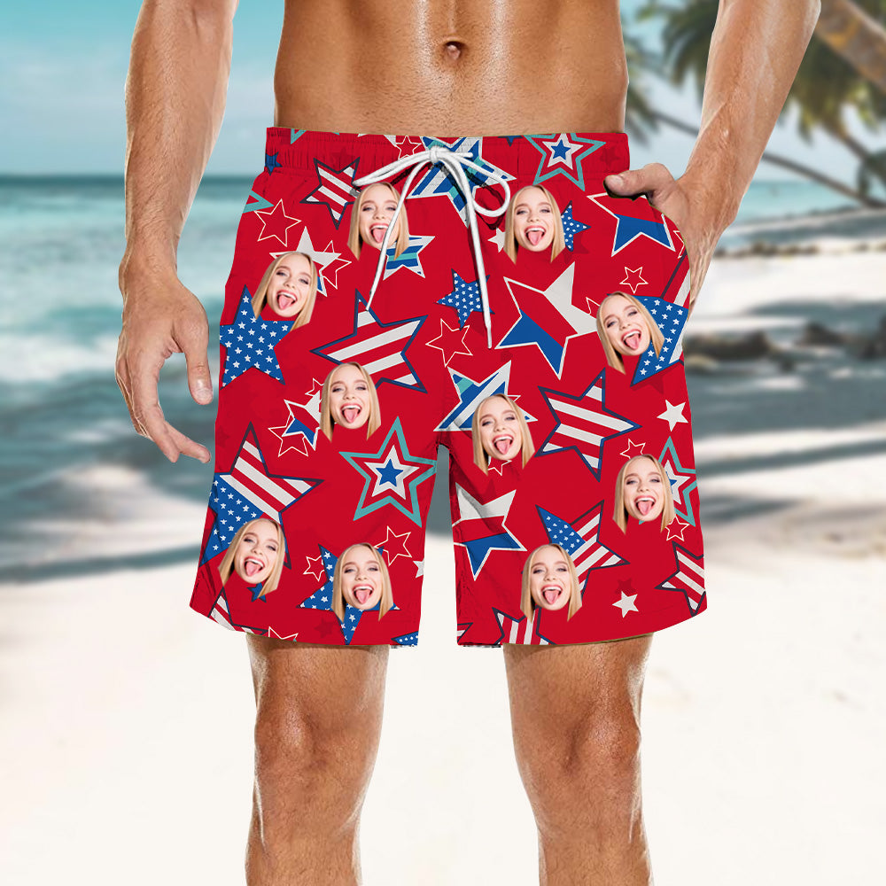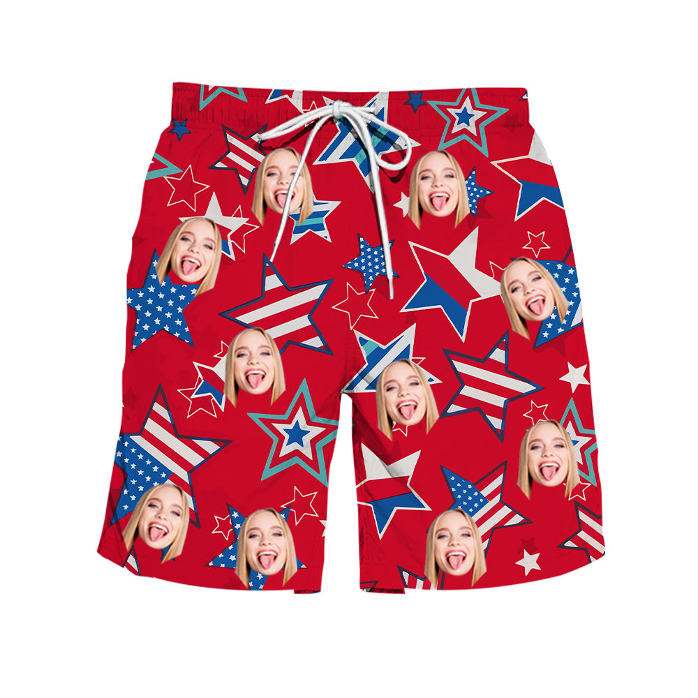 Unique Custom Face Patriotic Shorts Personalized Men's Independence Day Beach Swimwear
