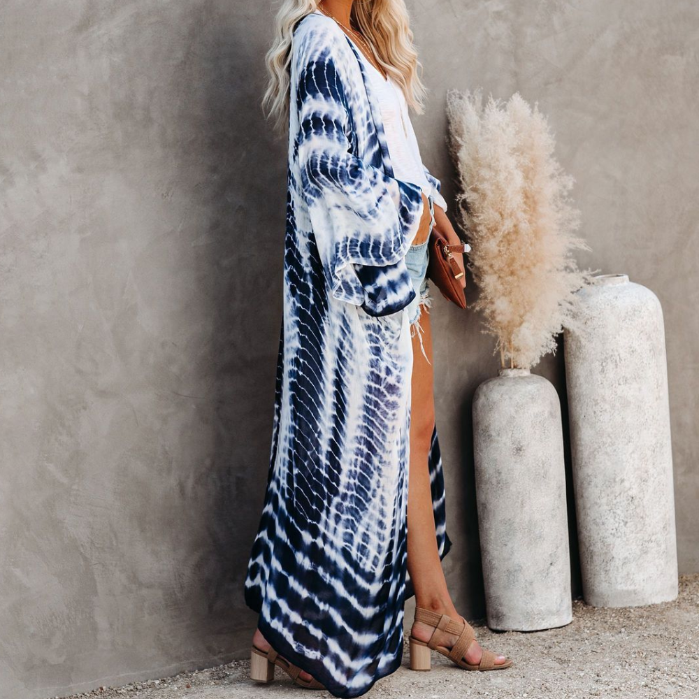 Lange Strand-Kimono-Badeanzug-Abdeckung für Damen mit offener Vorderseite