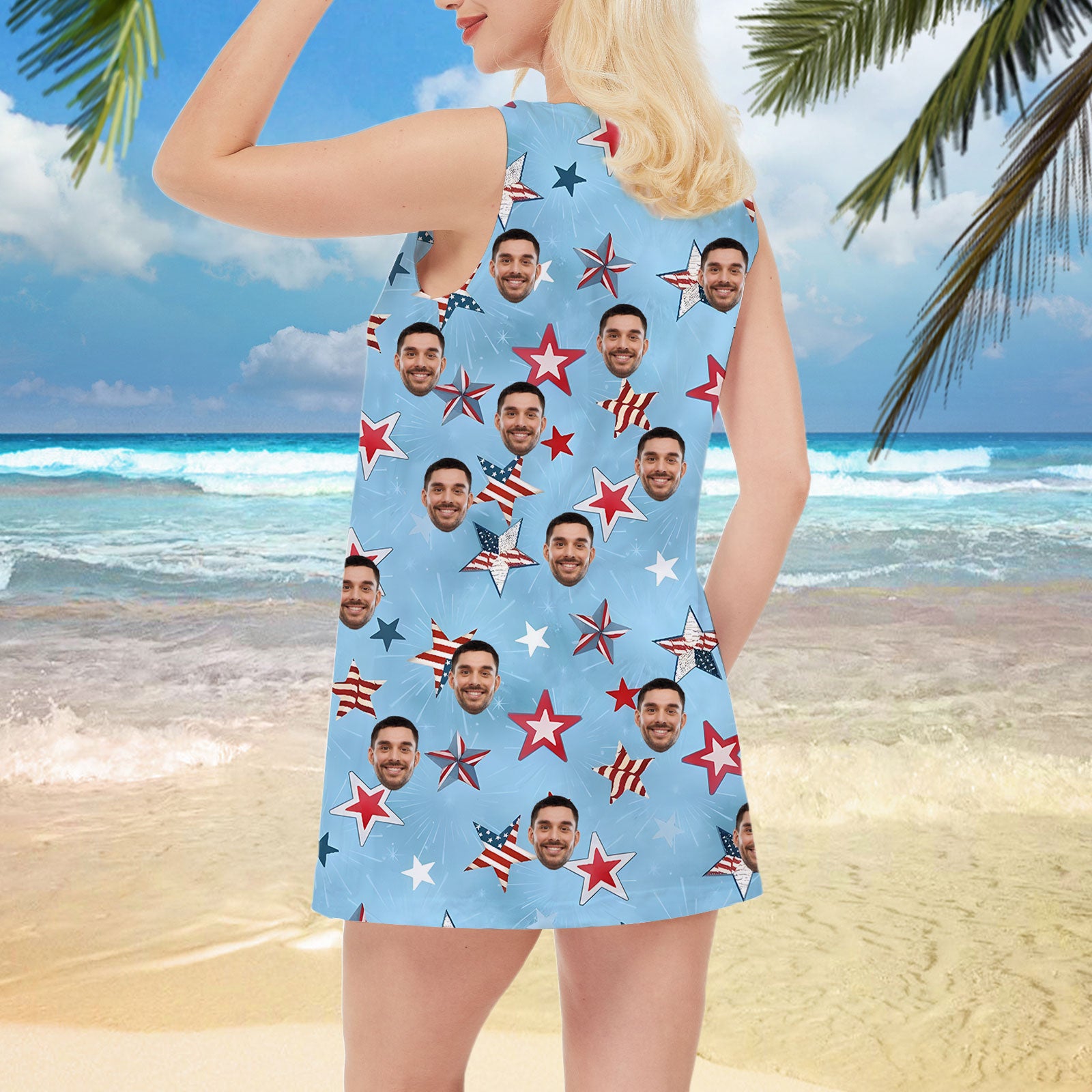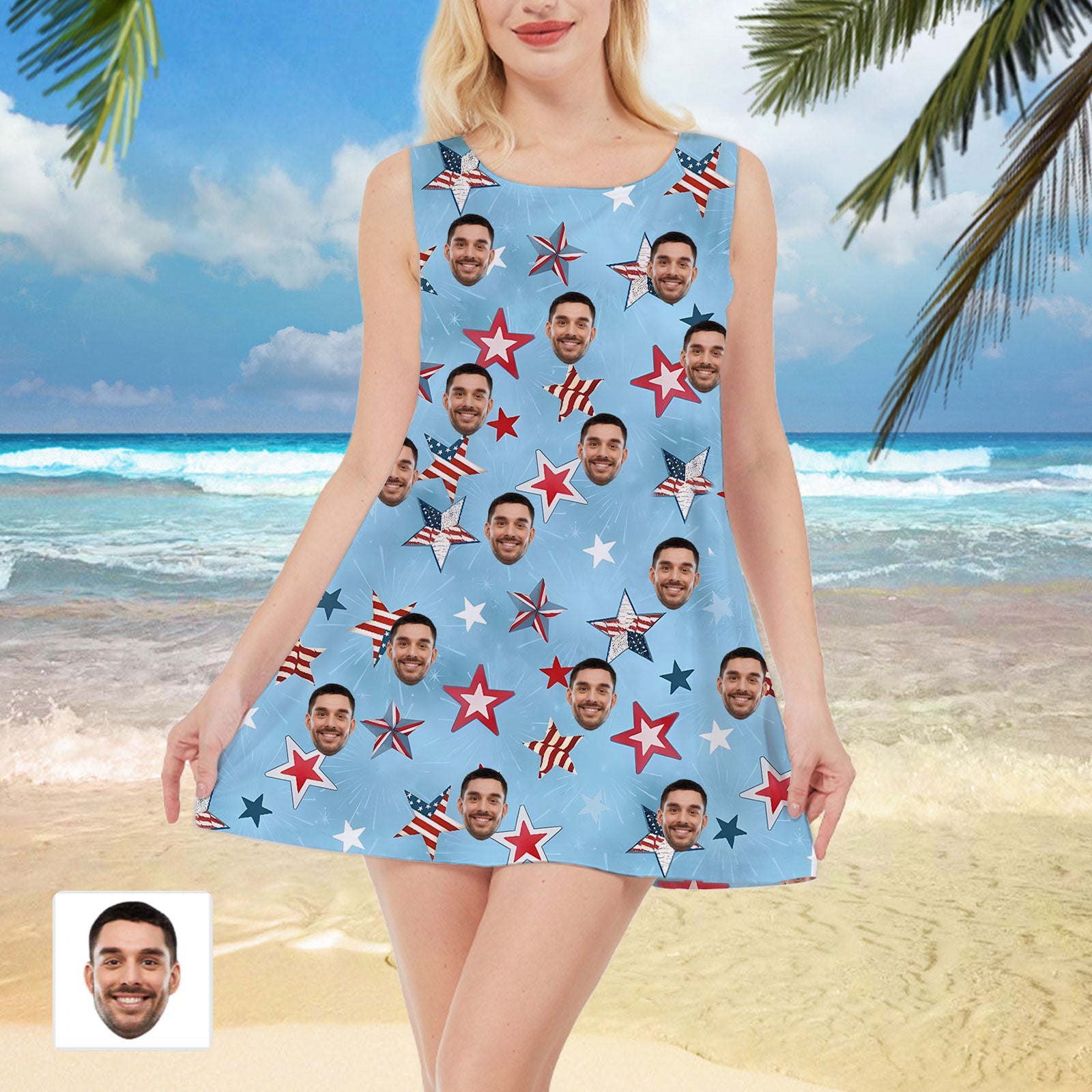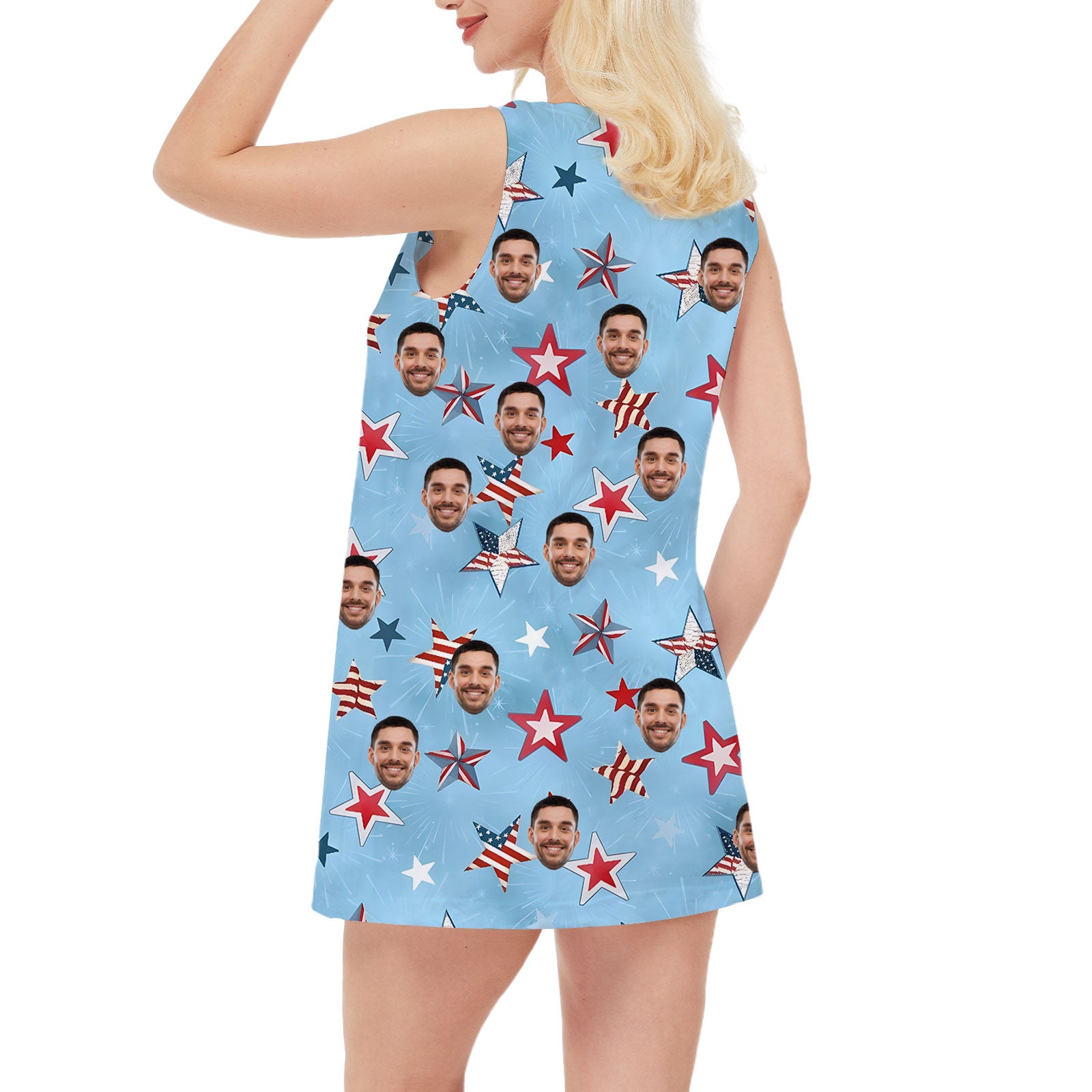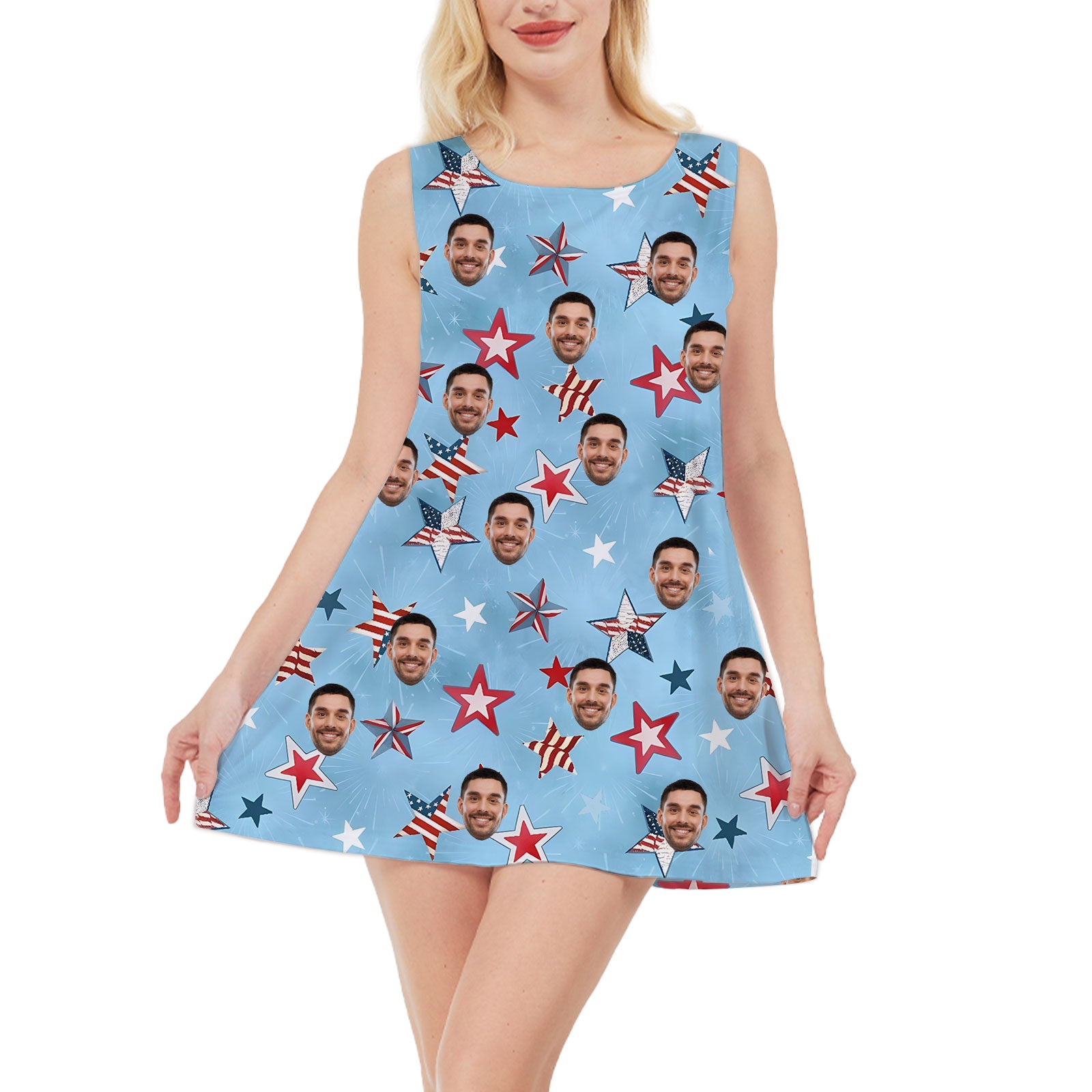 Women's Custom Face Flag Dress Personalized Unique Independence Day Dress
