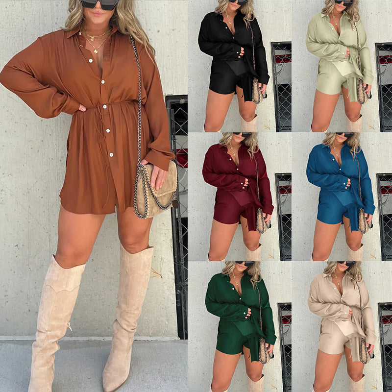 Women's Solid Color Long Sleeve Shirt Suit