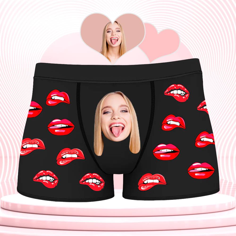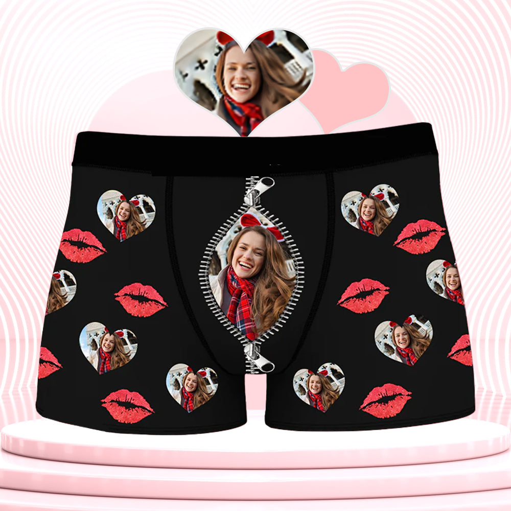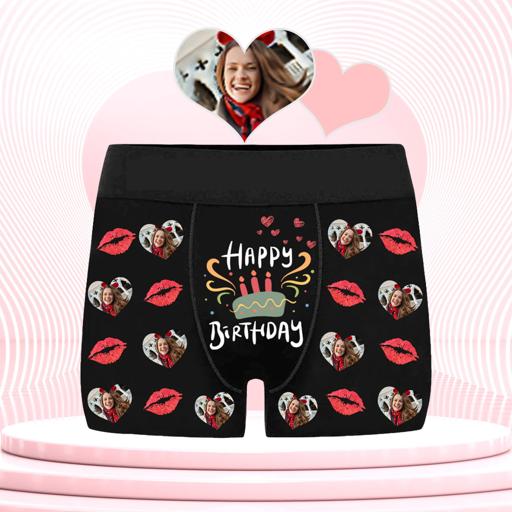 (Tax Included) Happy Birthday Lip Print Love Photo Customized Men's Boxer Underwear Birthday Gift