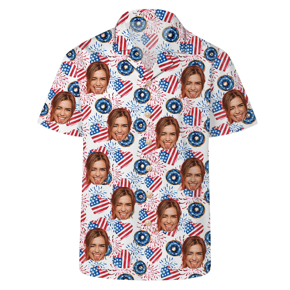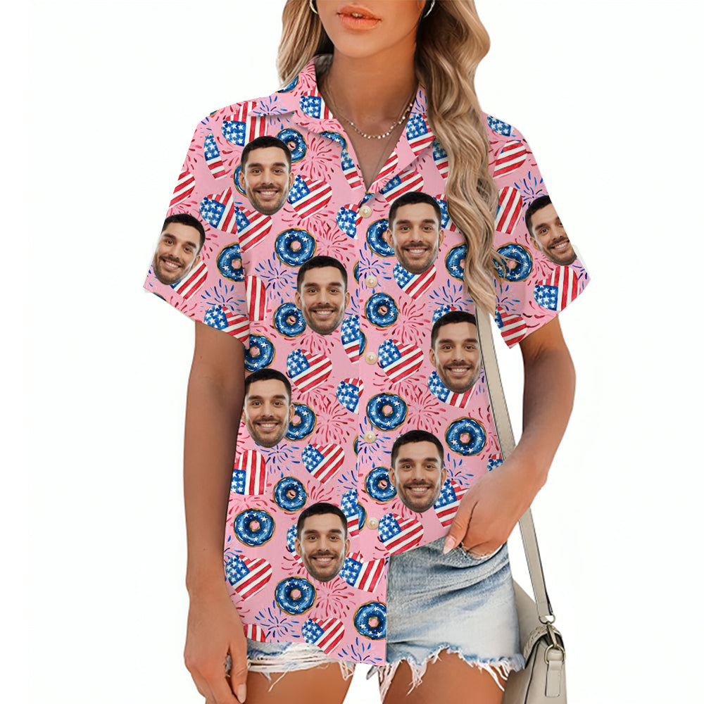 Pink Women's Hawaiian Shirt Flag Fireworks Printing American Independence Day Customized Gift