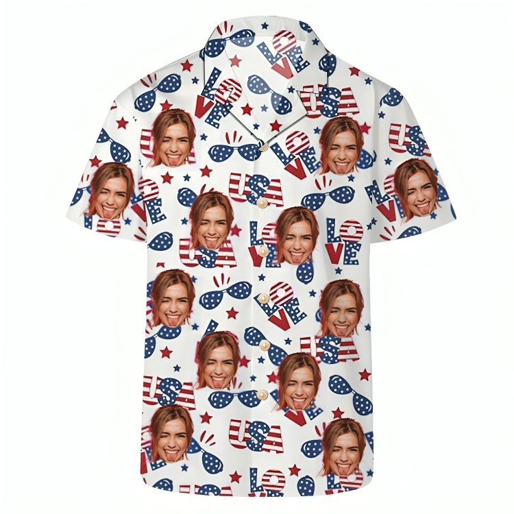 Love USA July 4th Custom Men's Hawaiian Shirts Casual Short Sleeve Tops American Independence Day