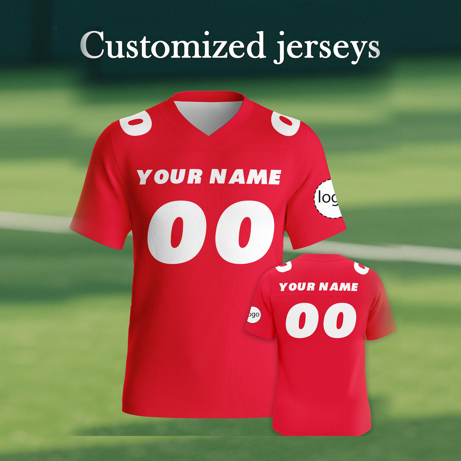 Red Solid Football Uniform - Vibrant Custom Name & Number