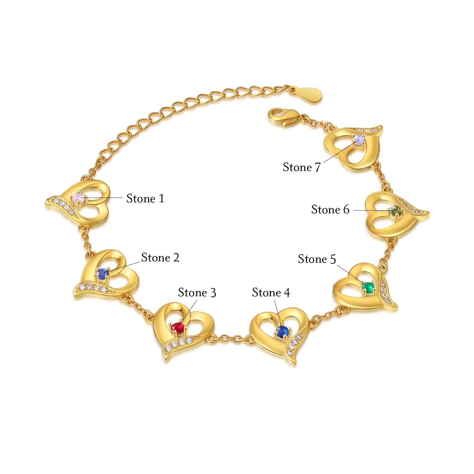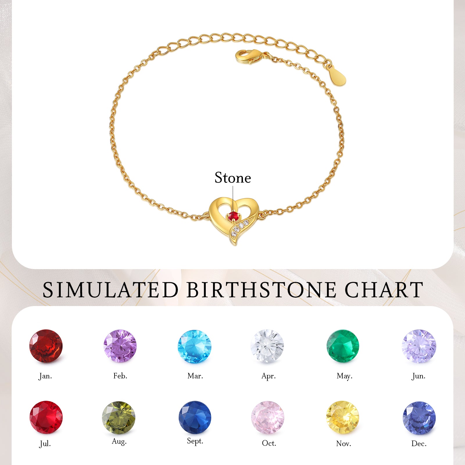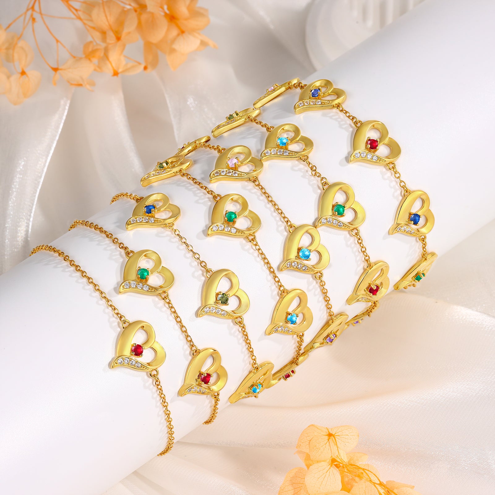4FunGift® Custom Birthstone Heart Bracelet Valentine's Day Gift for Her