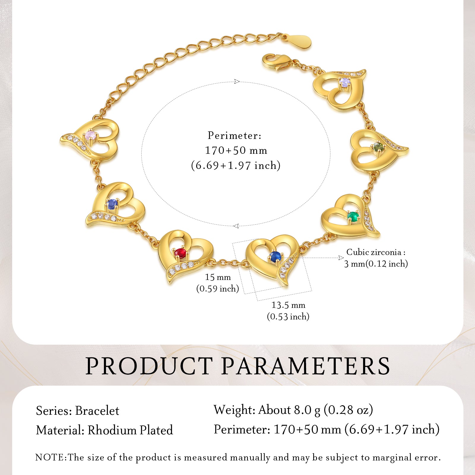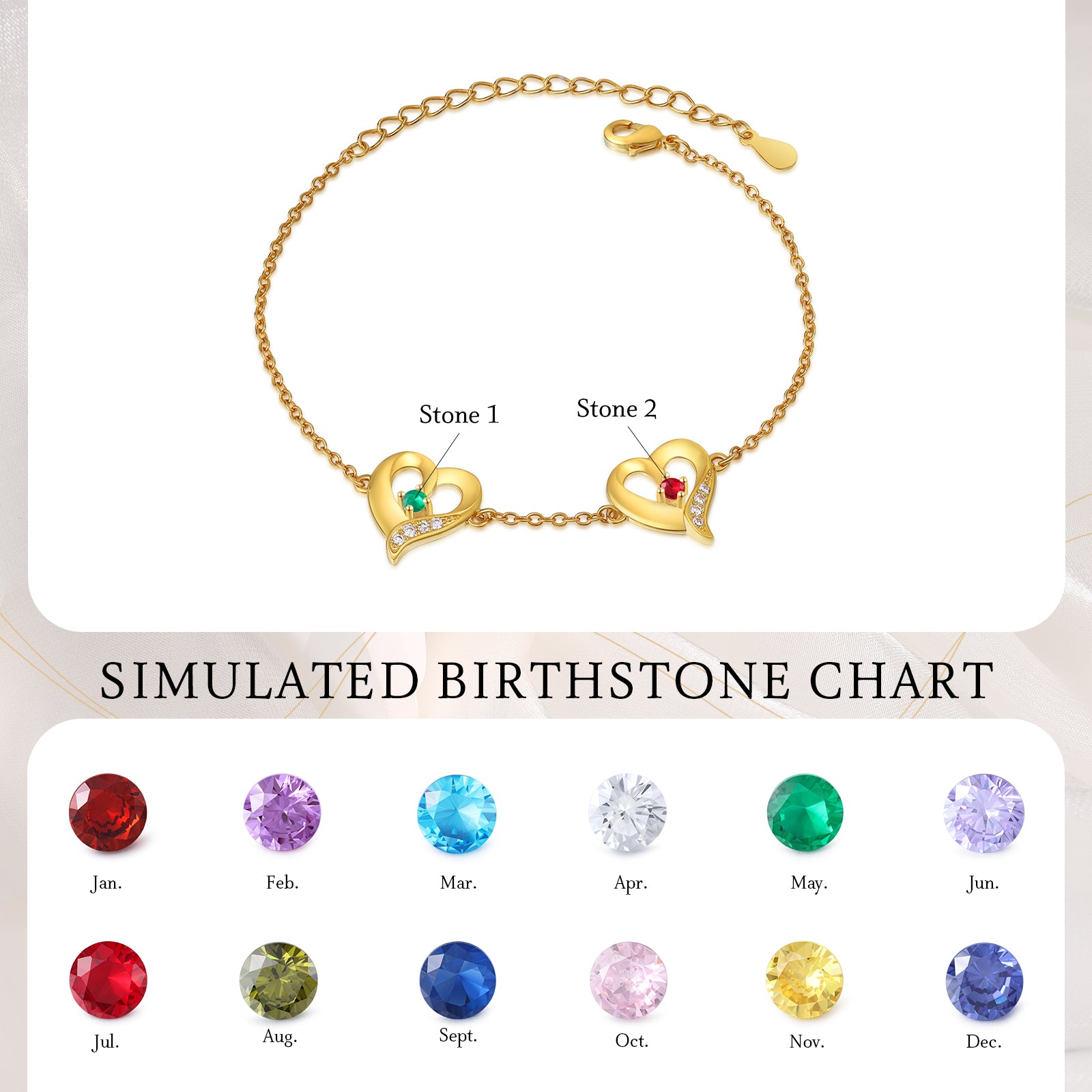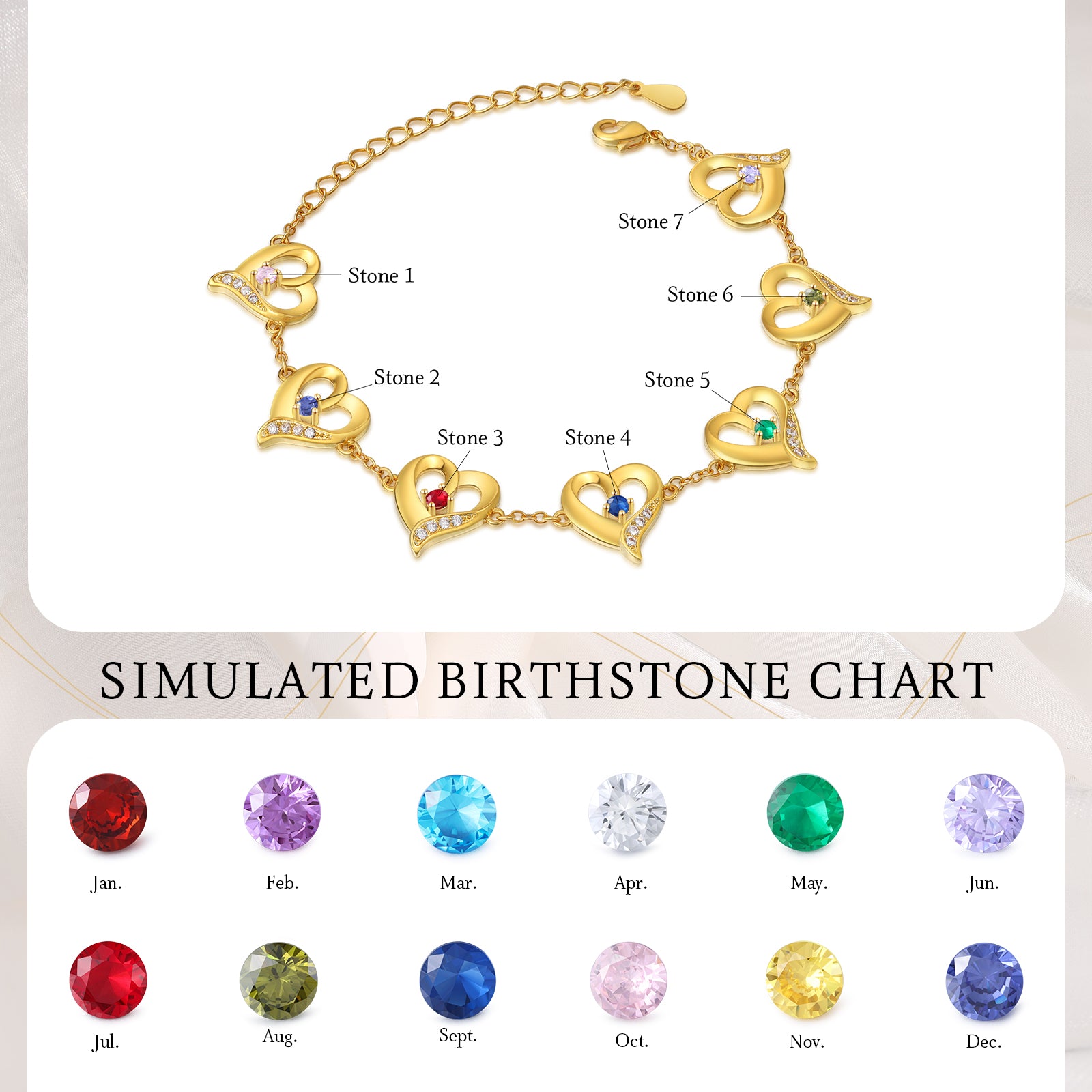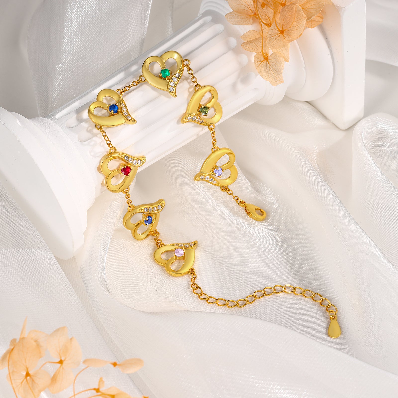 4FunGift® Custom Birthstone Heart Bracelet Valentine's Day Gift for Her