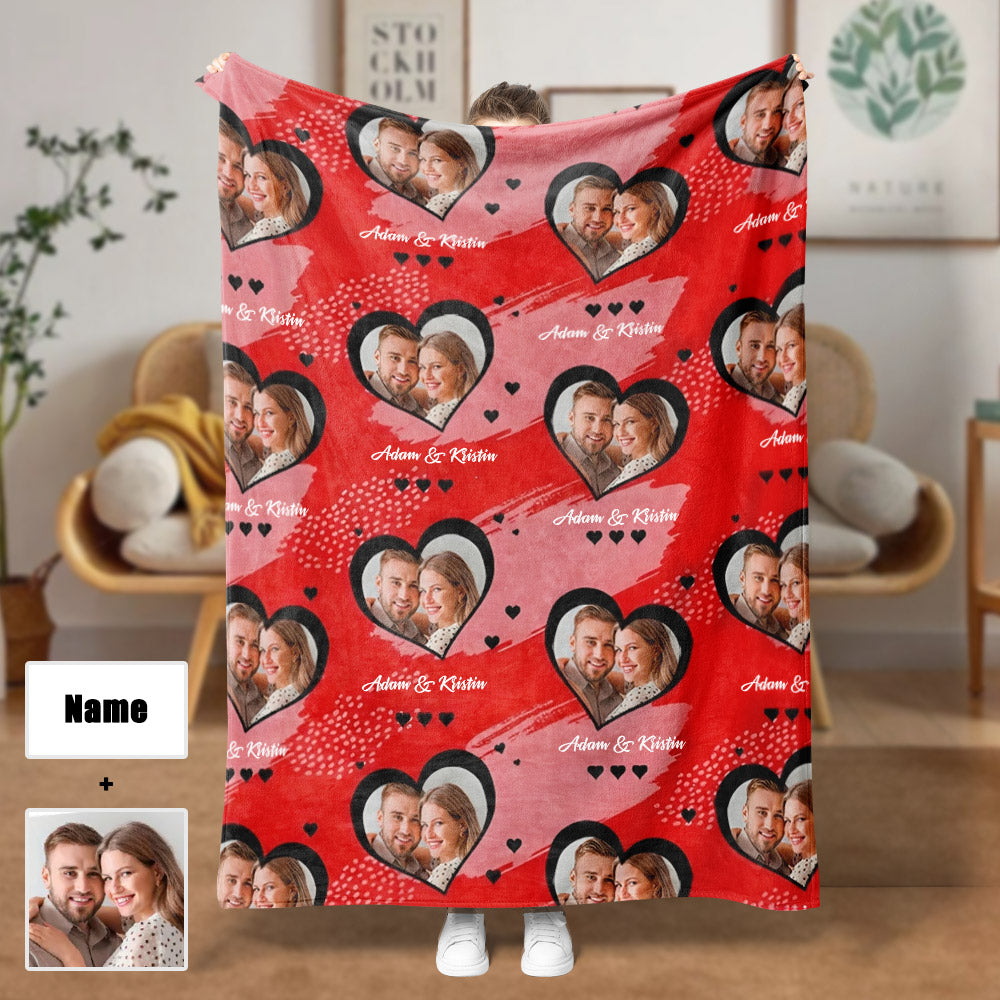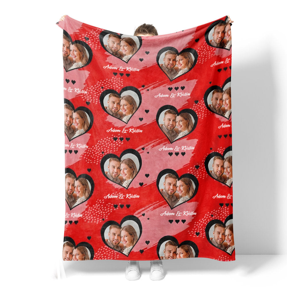 4FunGift® Custom Blankets Valentine's Day Gift Personalized Couple Heart Blanket Couple Gifts
