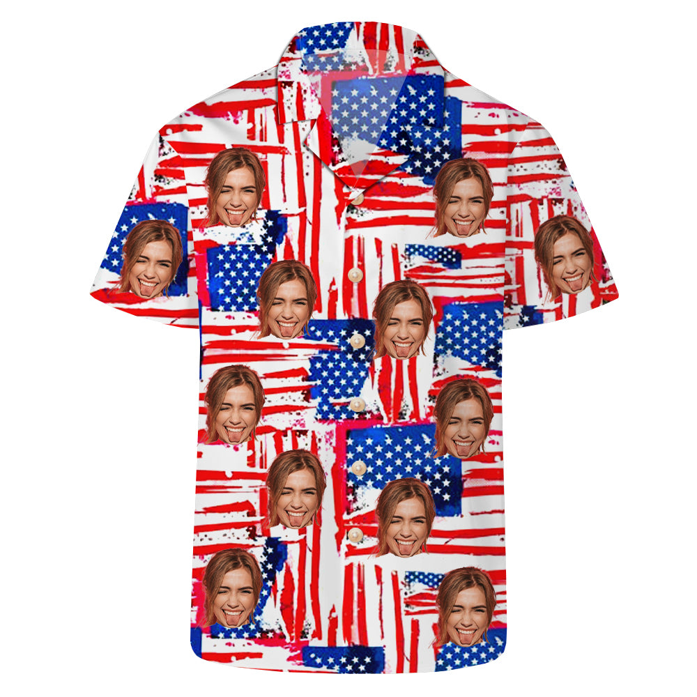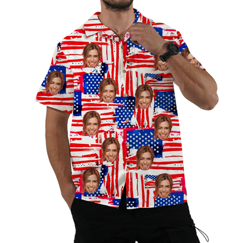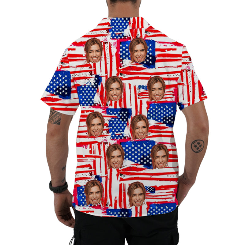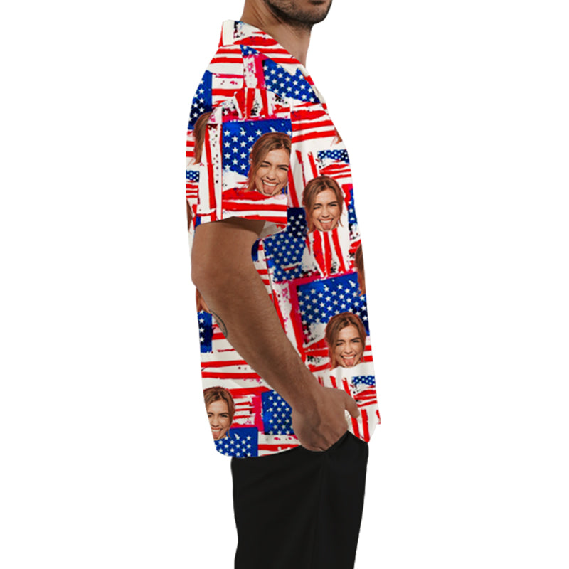 American Flag Print Independence Day Shirt Customized Face Shirt Casual Top Summer Short Sleeve