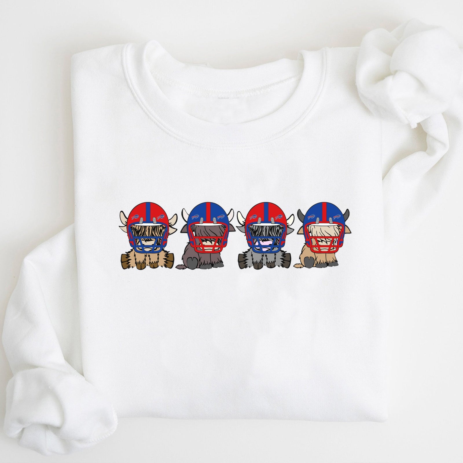 Cheer on your favorite team with our adorable Highland Cow Football Team Sweatshirt! Featuring charming Highland cows each sporting different American football team hats, this sweatshirt lets you pick your preferred team and show your support in style.