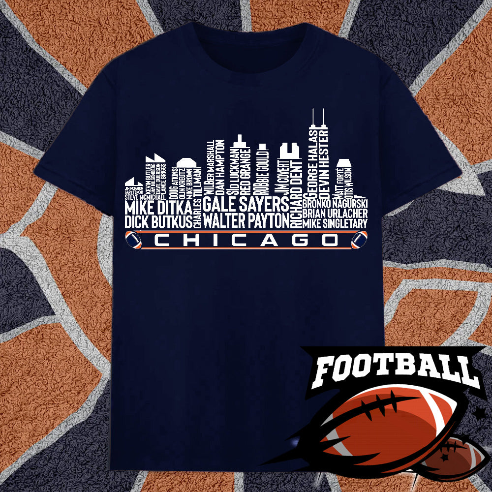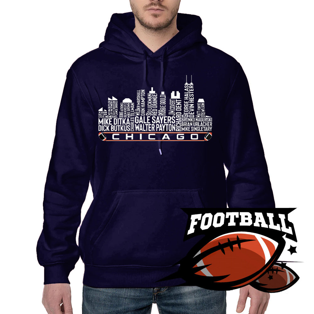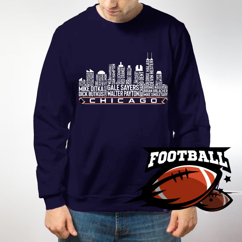 Chicago Football Team All Time Legends Name Tee Hoodie Sweatshirt Chicago City Skyline Tee Football Fans Gift