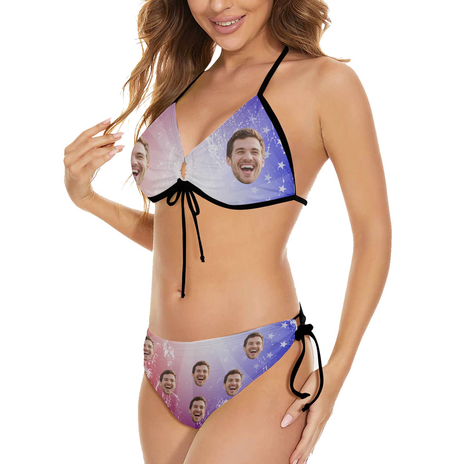 (Tax Included) Custom Face Gradient Galaxy Print Bikini Set With Romantic Portrait Design