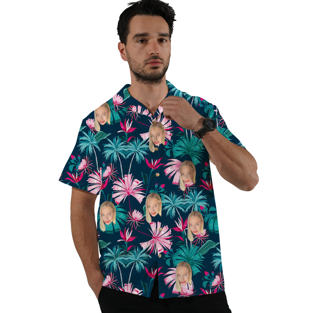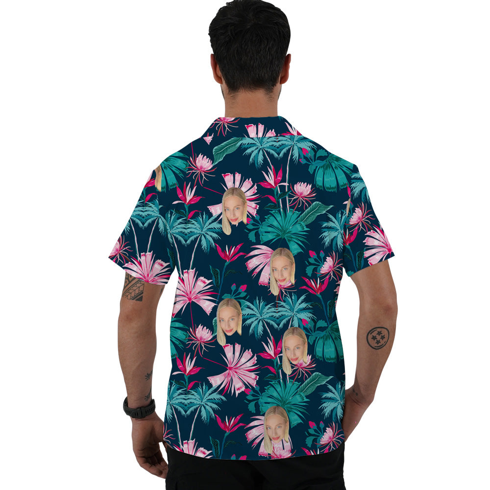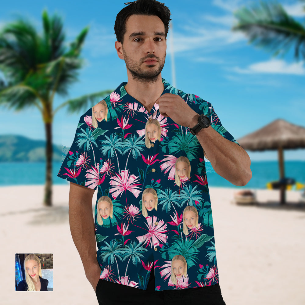 Camisas hawaianas de cara personalizada Camisa de flores rosa para hombre