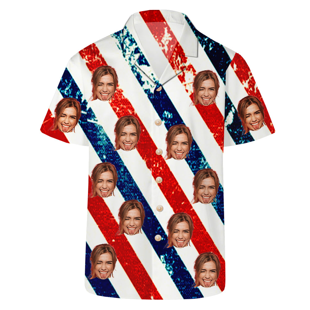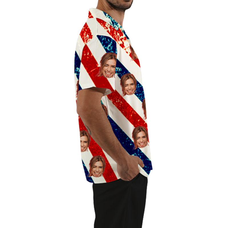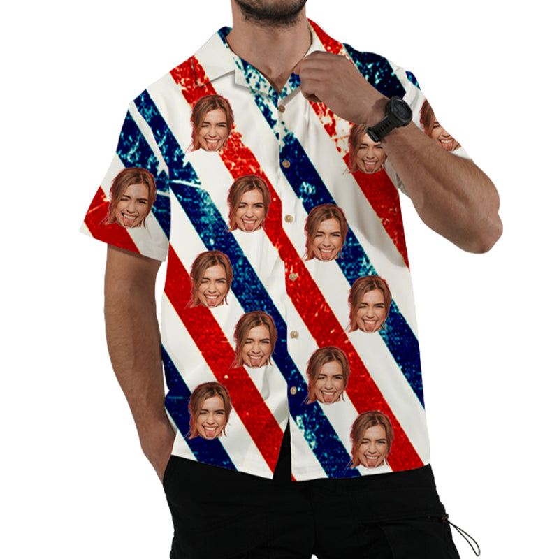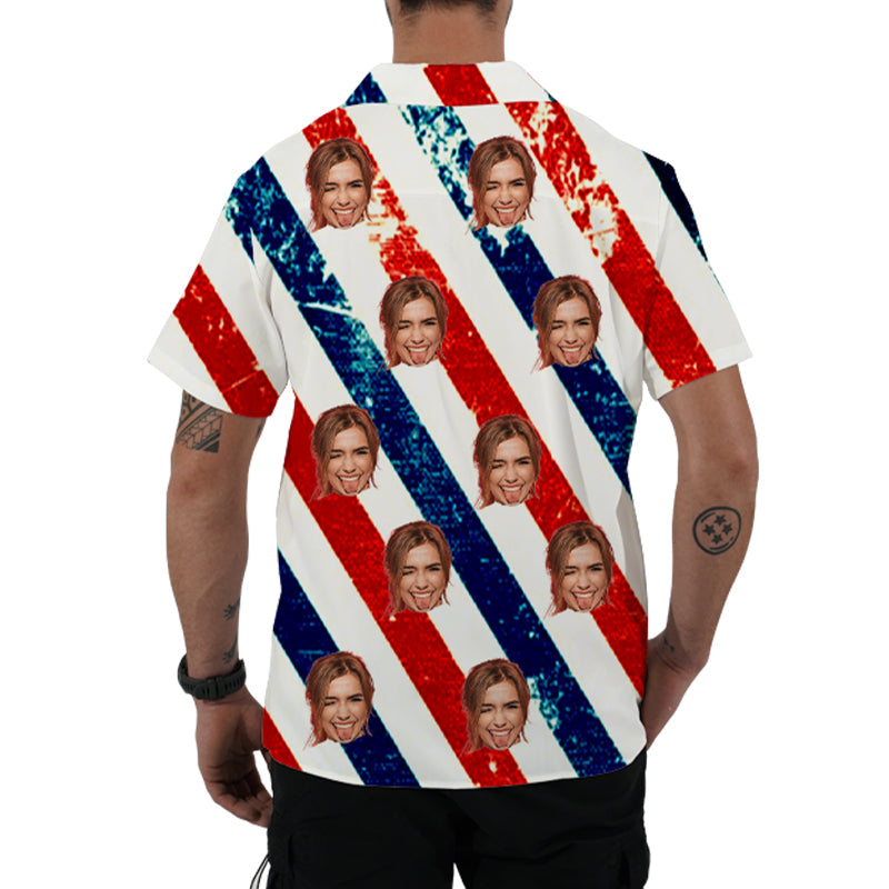 Custom Face Men's Summer Shirt Striped Shirt Classic Hawaiian Shirt Gifts for Him
