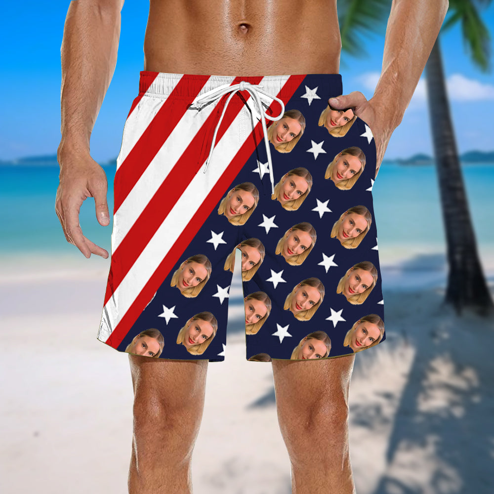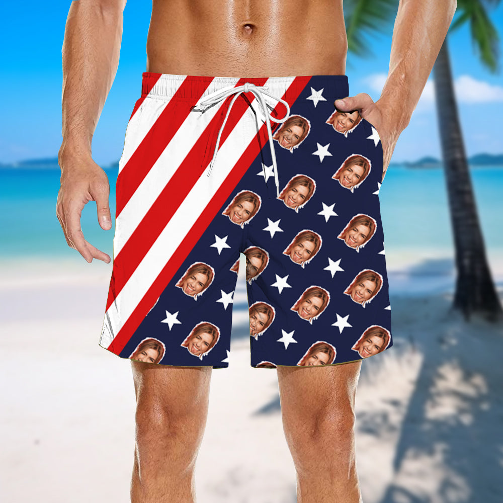 Customized Men's Summer Beach Shorts Elasticated Pocket Shorts Adjustable Cord USA Independence Day