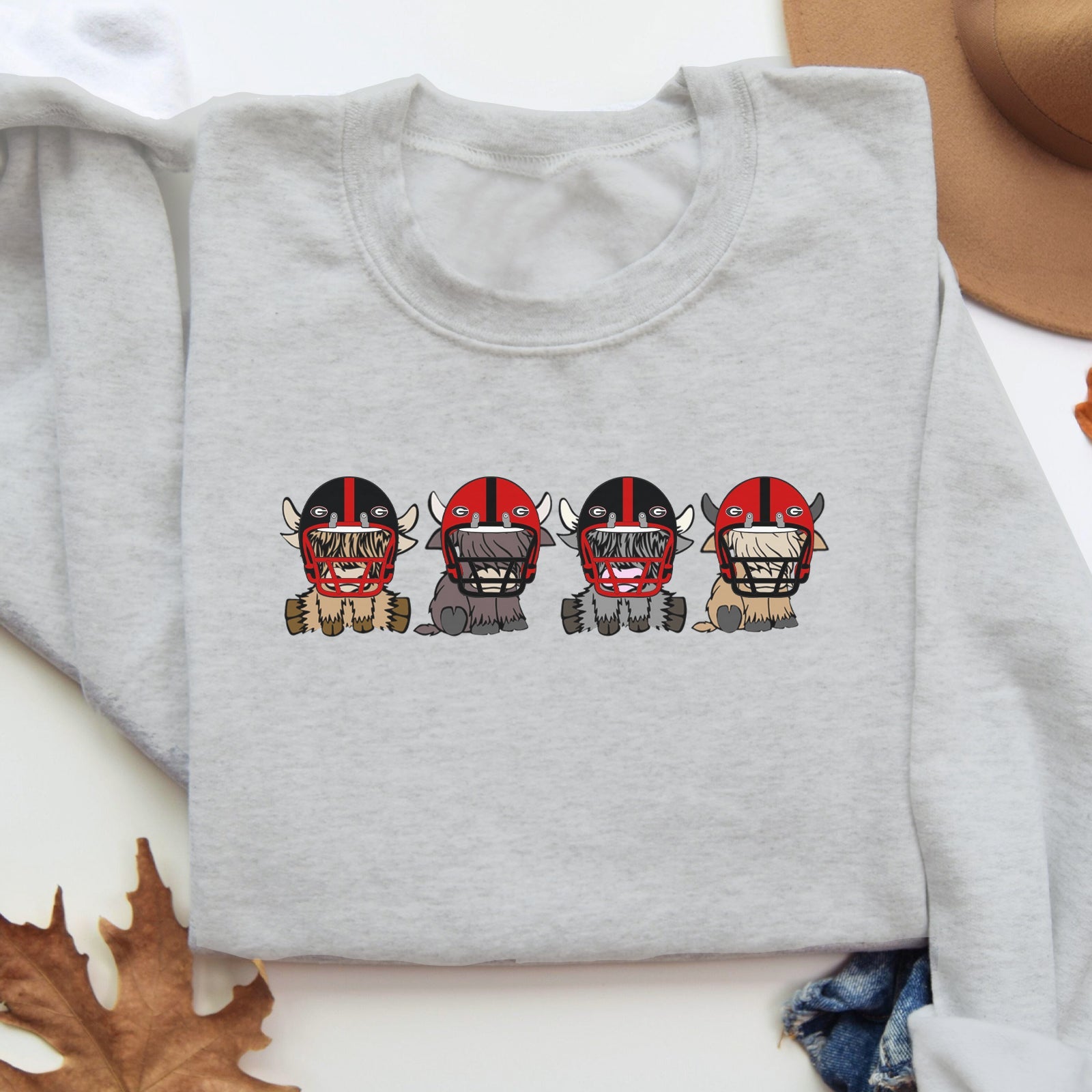 Georgia Bulldogs Football Highland Cow Football Team Football Lovers Gift Unisex Crewneck Hoodie Sweatshirt