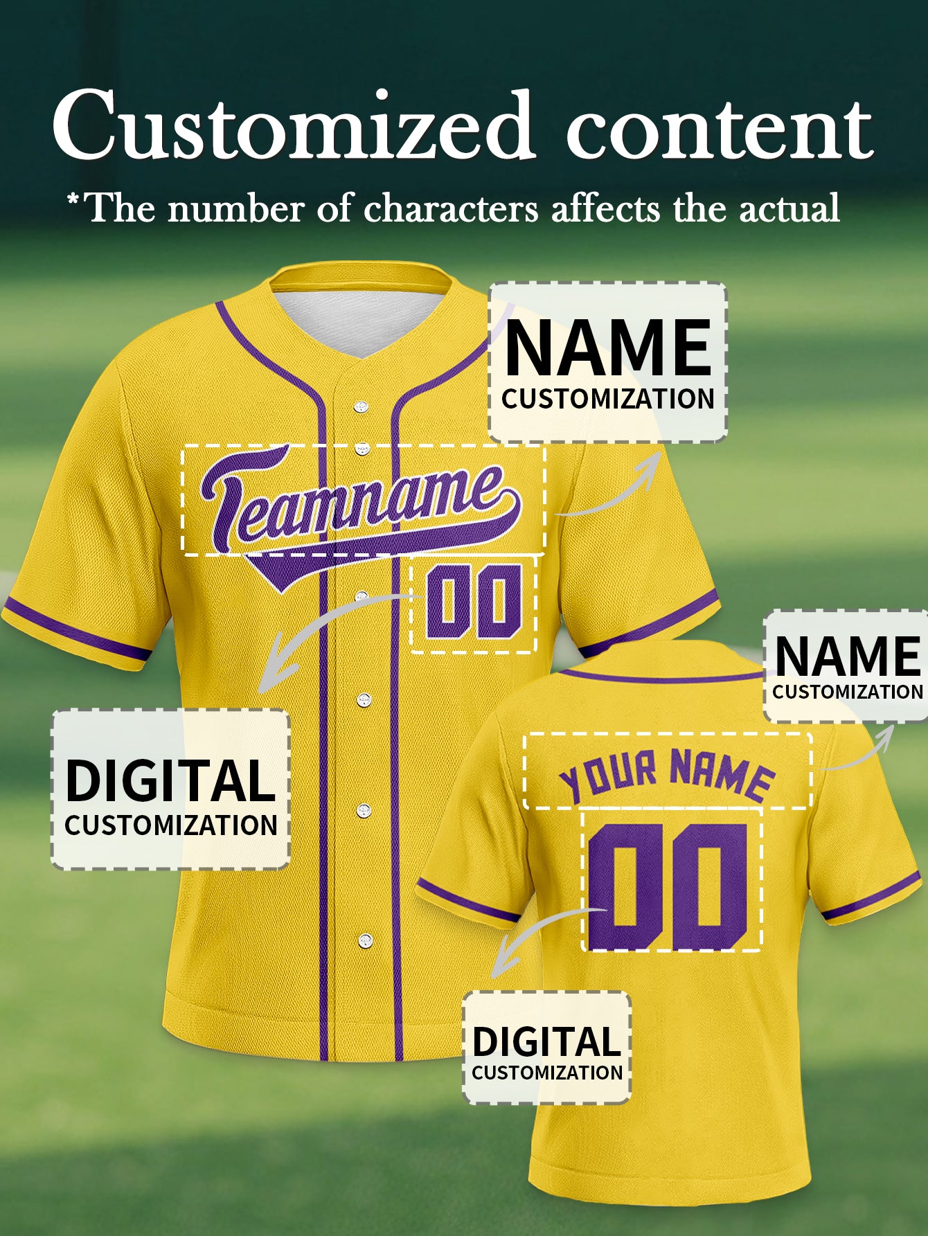 Gold & Purple Baseball Jersey - Los Angeles Lakers Color Personalized Edition