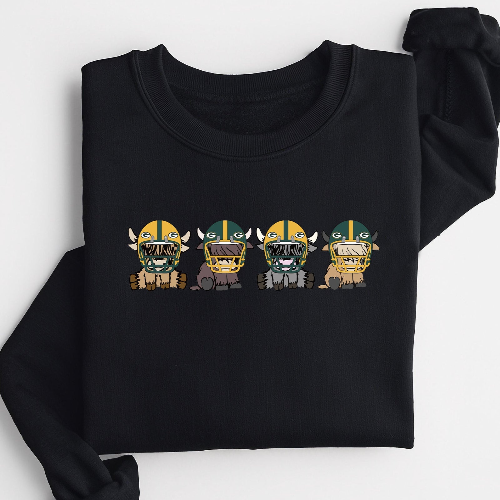 Green Bay Packers Highland Cow Football Team Football Lovers Gift Unisex Crewneck Hoodie Sweatshirt