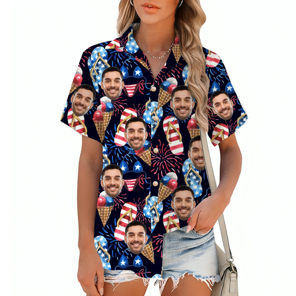 Happy Independence Day Women's Loose Hawaiian Shirts Women's Summer Short Sleeve Tops Casual Cover Ups