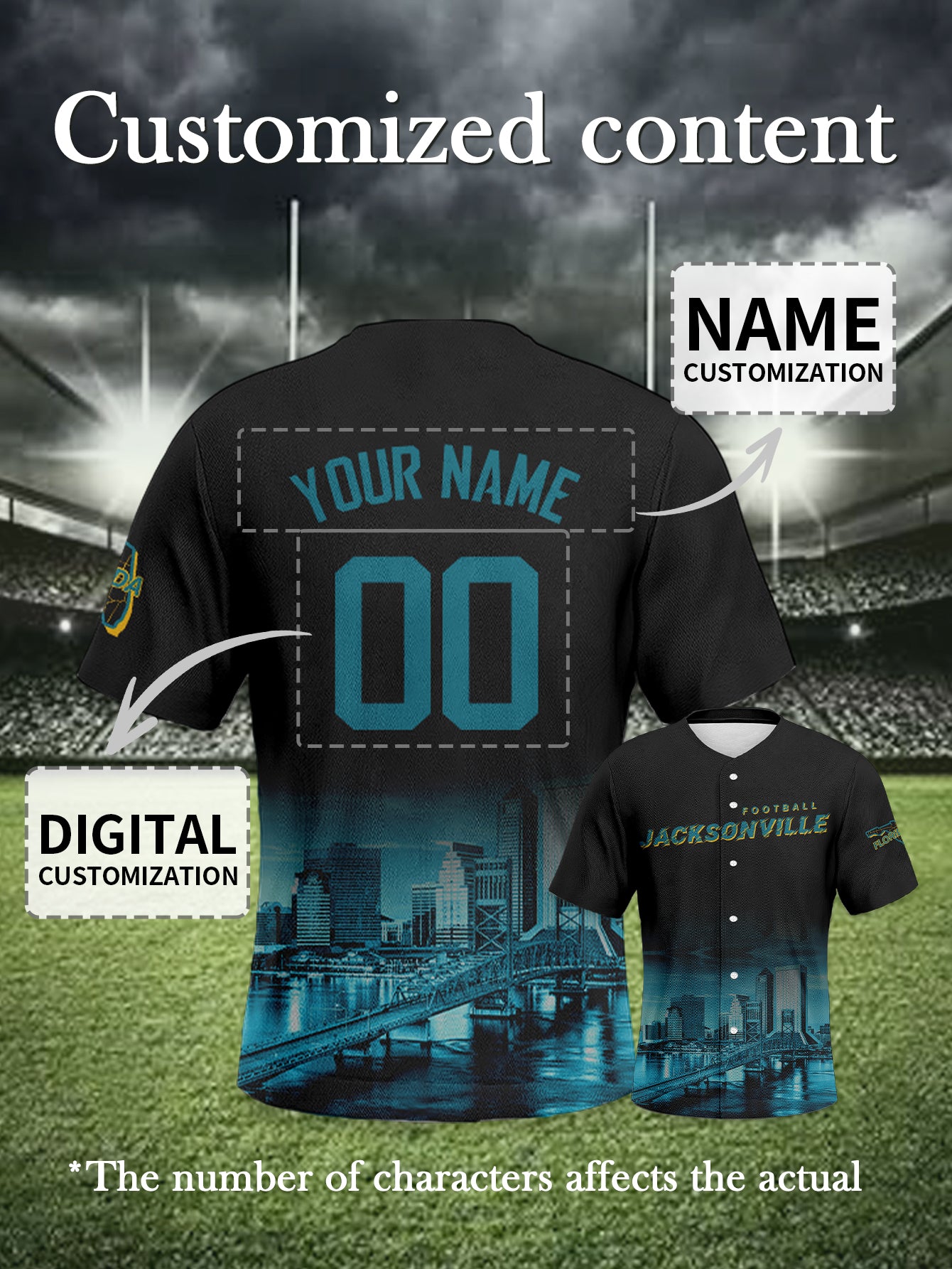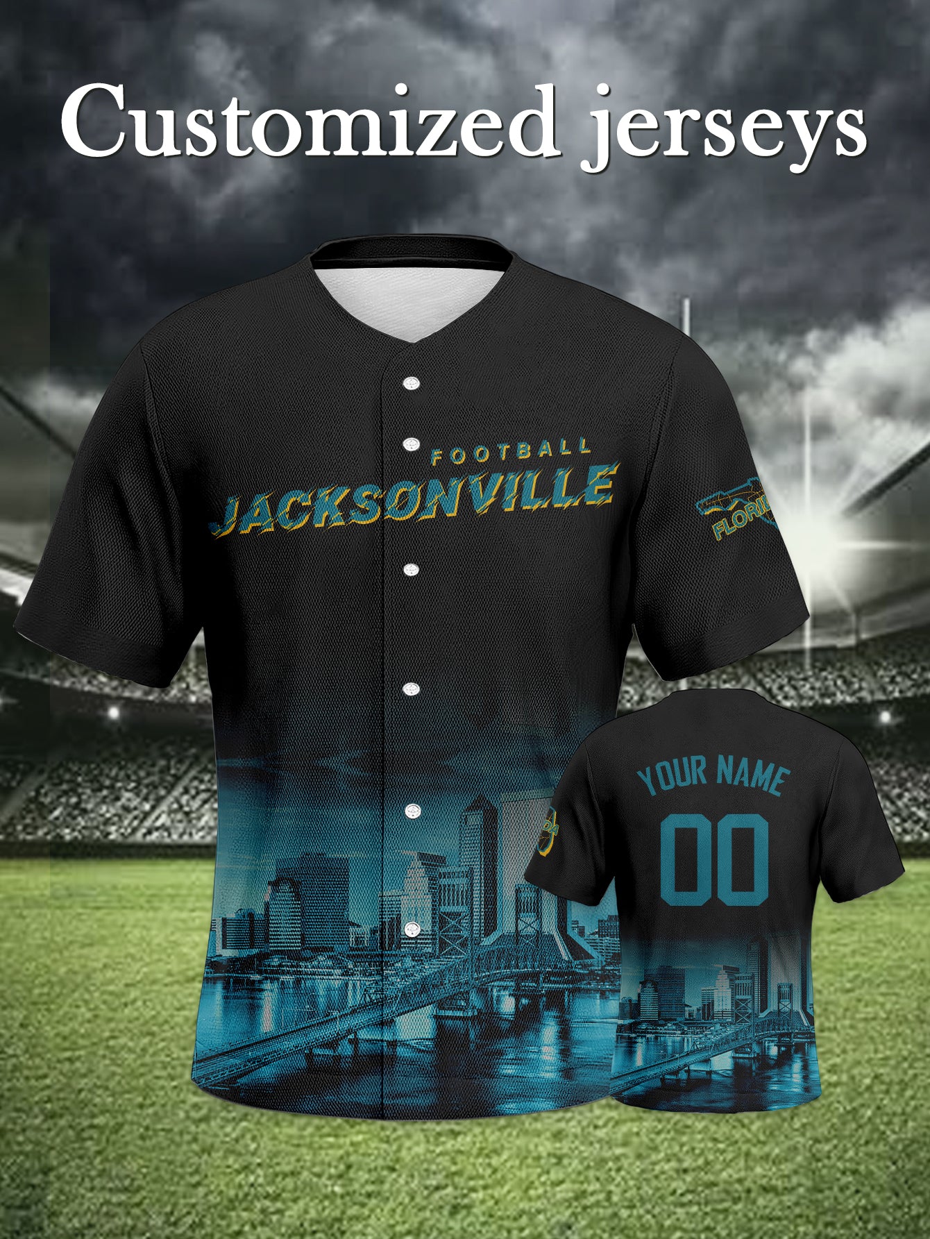 Jacksonville Jaguars Teal-Gold Baseball Jersey - Custom Edition