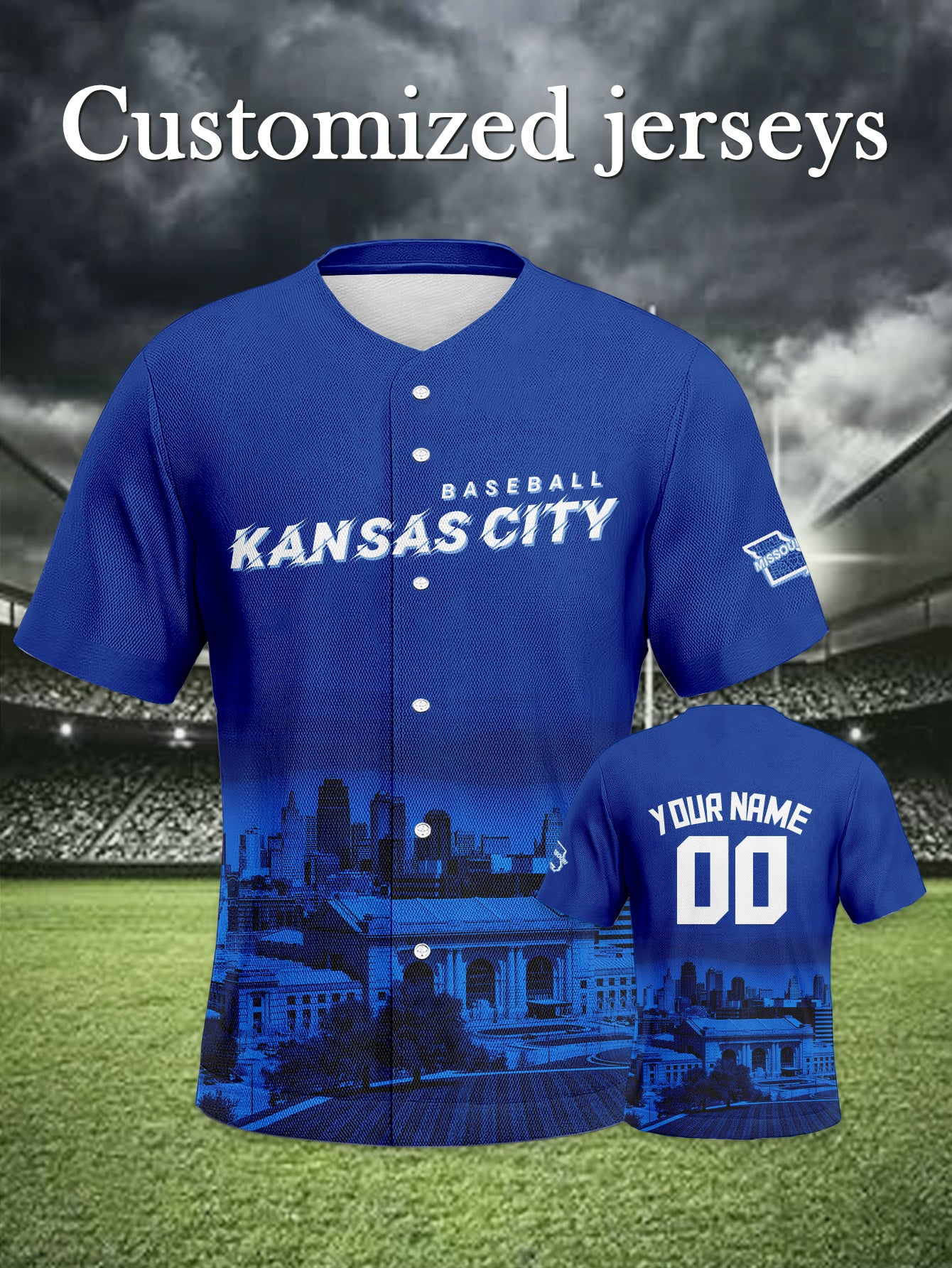 Kansas City Royals Baseball Uniform - Missouri Map (Personalized Name/Number)