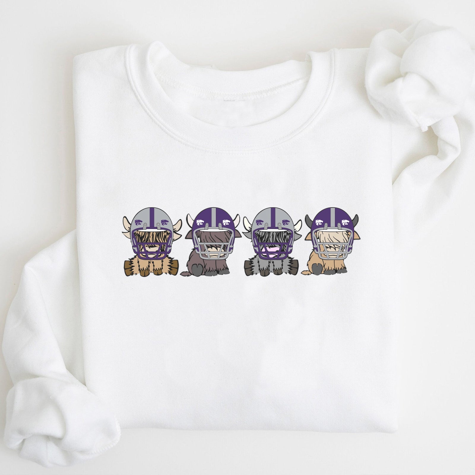 Kansas State Wildcats Football Highland Cow Football Team Football Lovers Gift Unisex Crewneck Hoodie Sweatshirt
