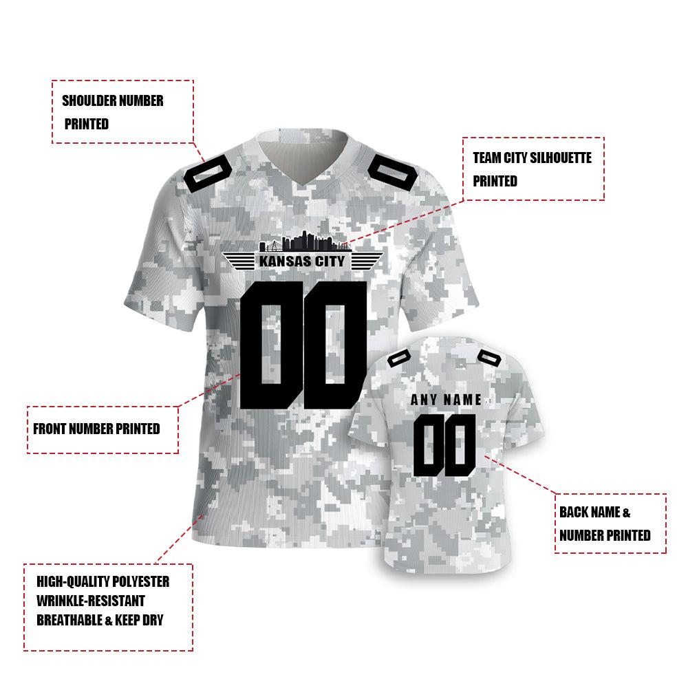 Salute To Kansas City Chiefs Men's Custom Game American Football Arctic Camo Jersey for Fans Gift Quick Dry Breathable