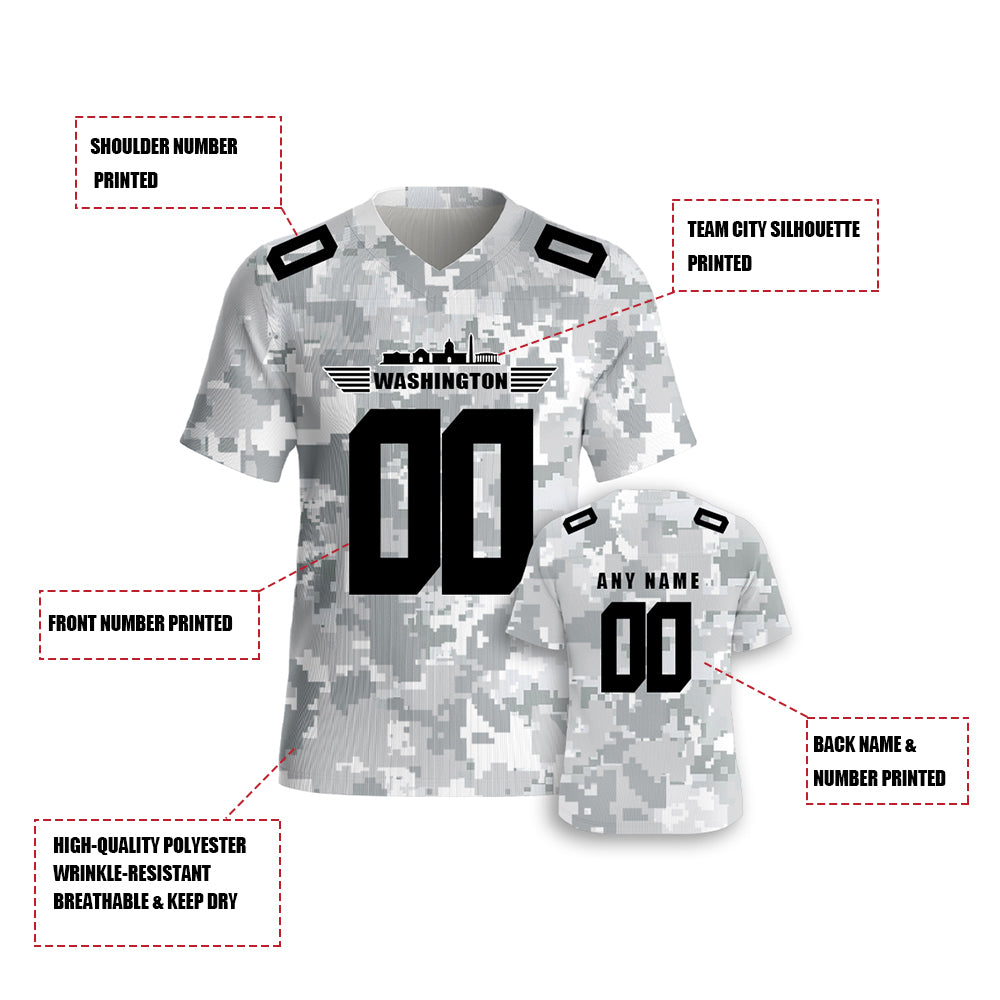 Salute To Washington Commanders Men's Custom Game American Football Arctic Camo Jersey for Fans Gift Quick Dry Breathable