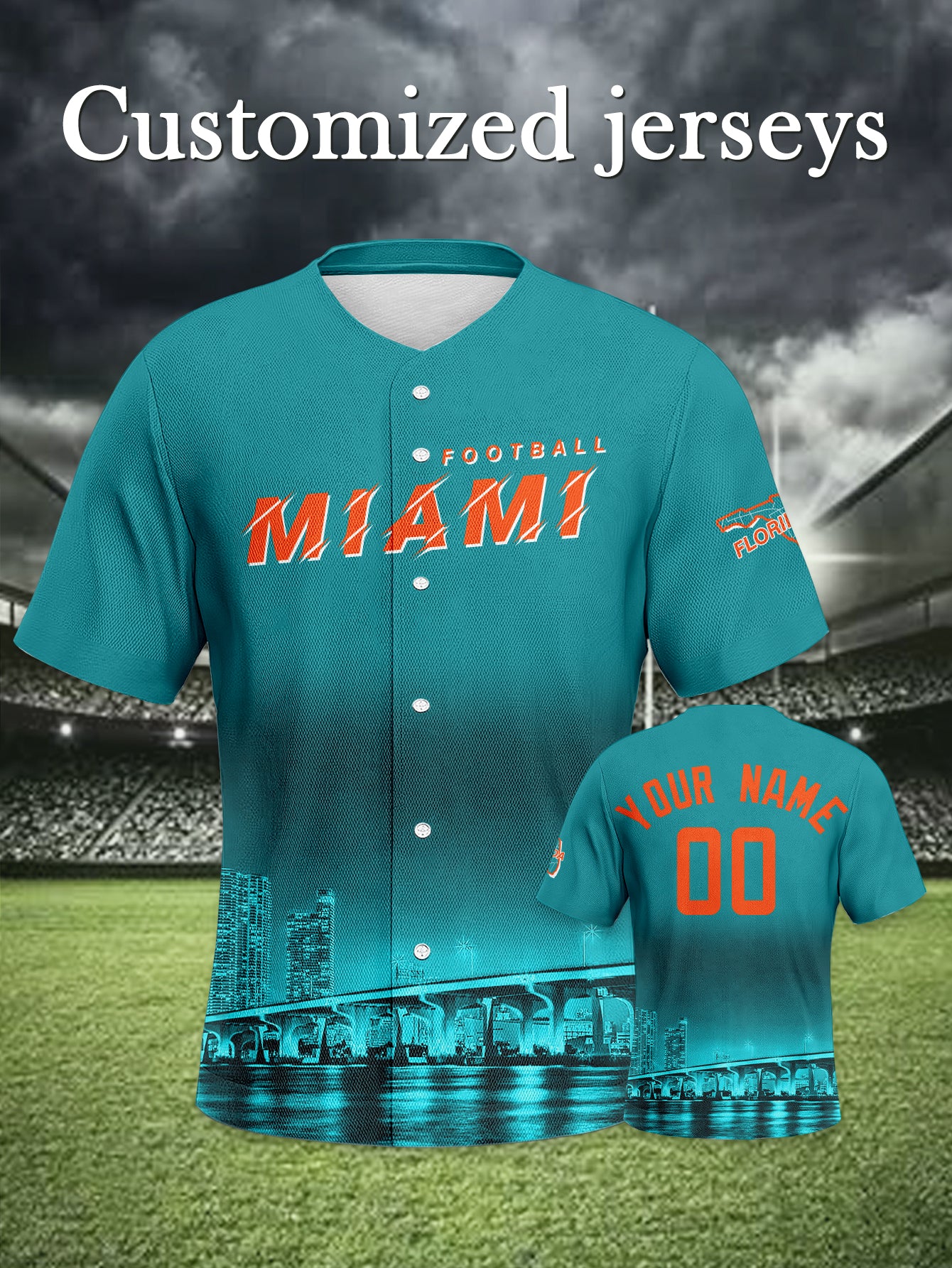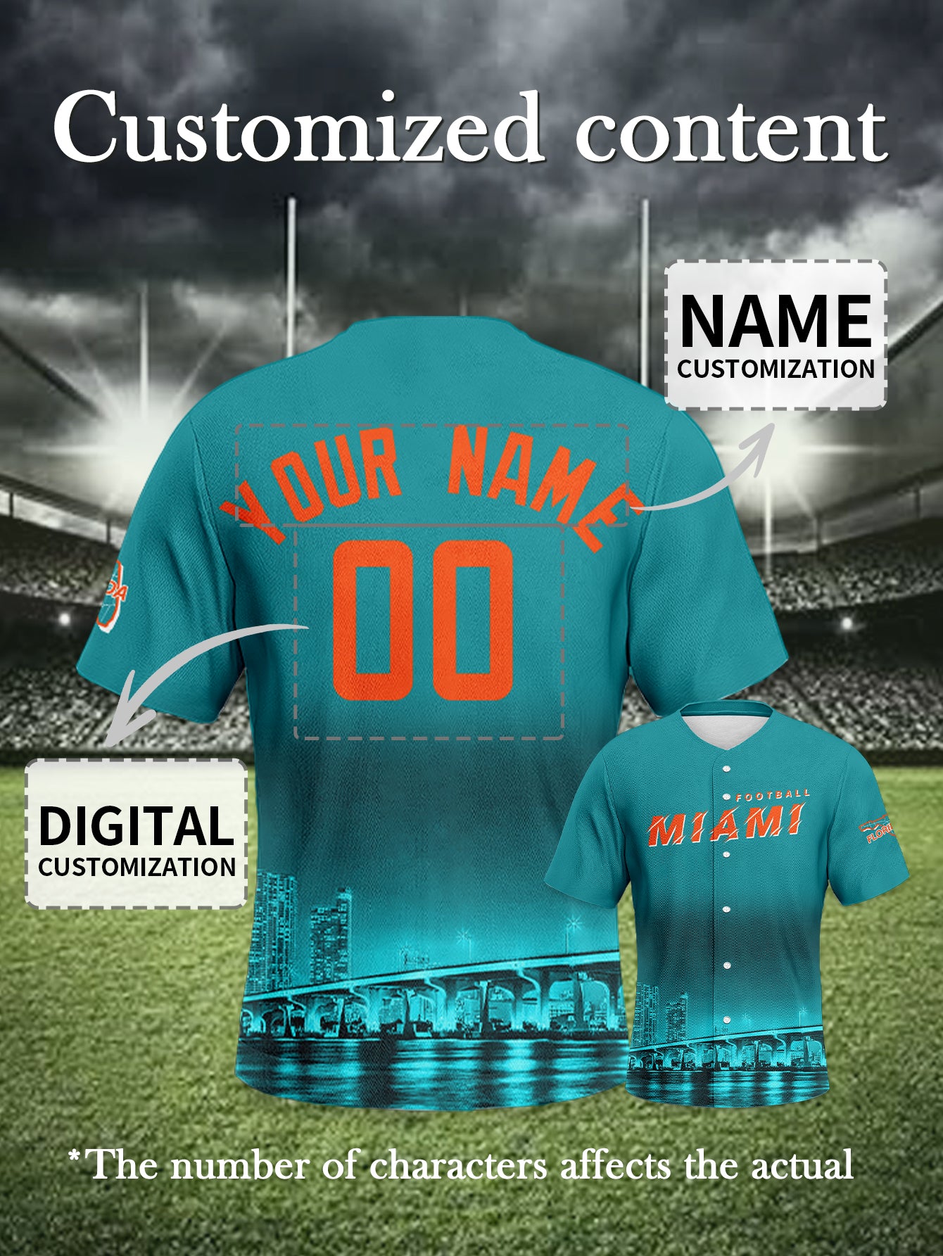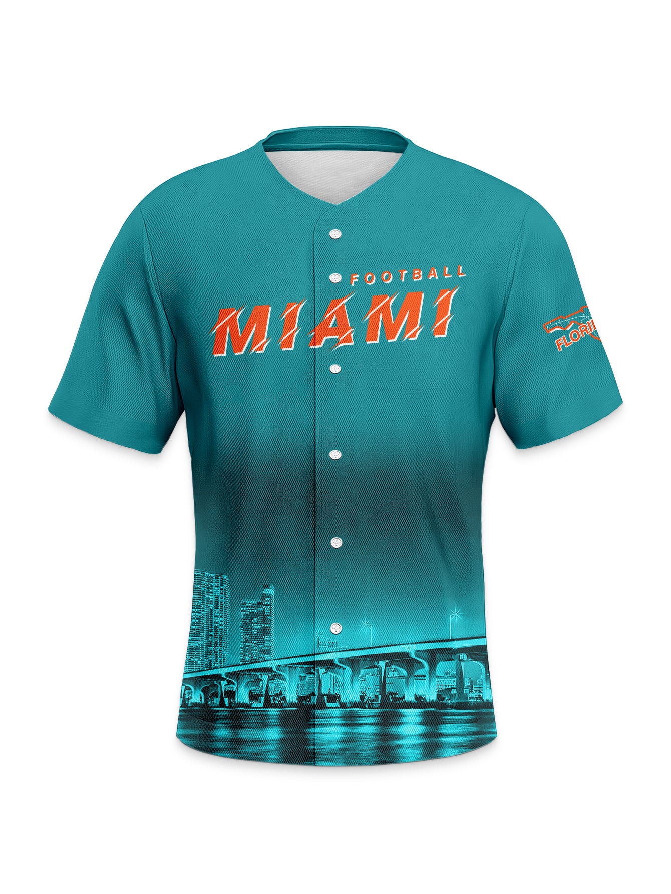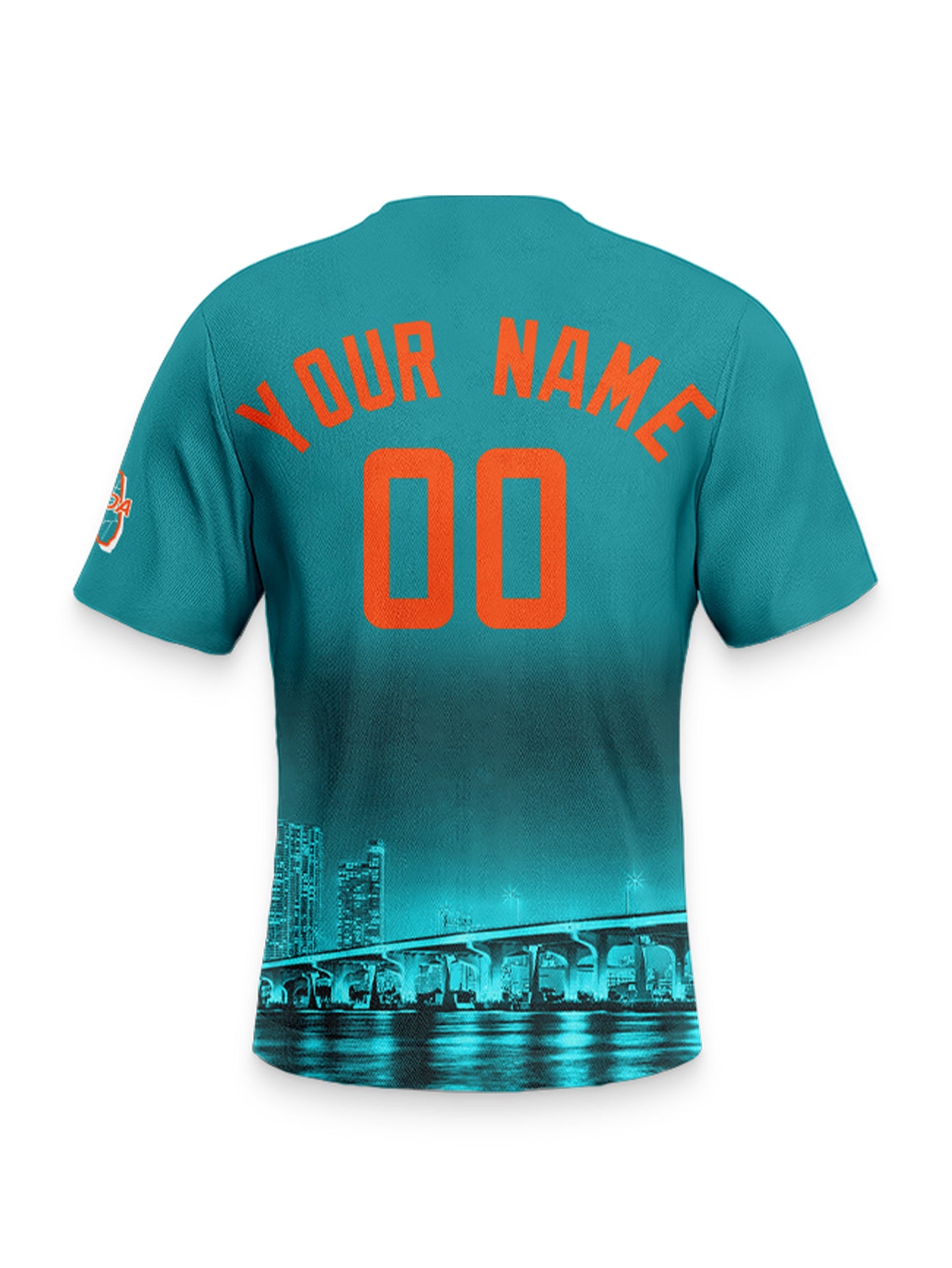 Miami Dolphins Coral-Orange Baseball Top - Personalized Name & Number