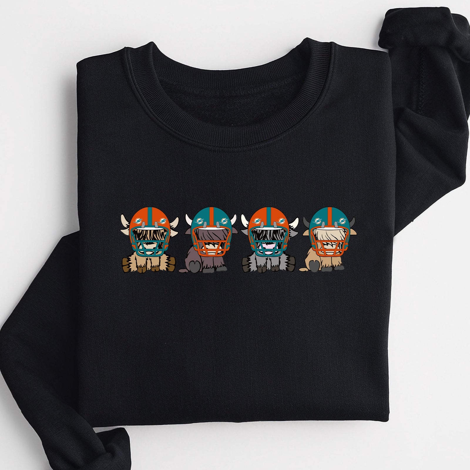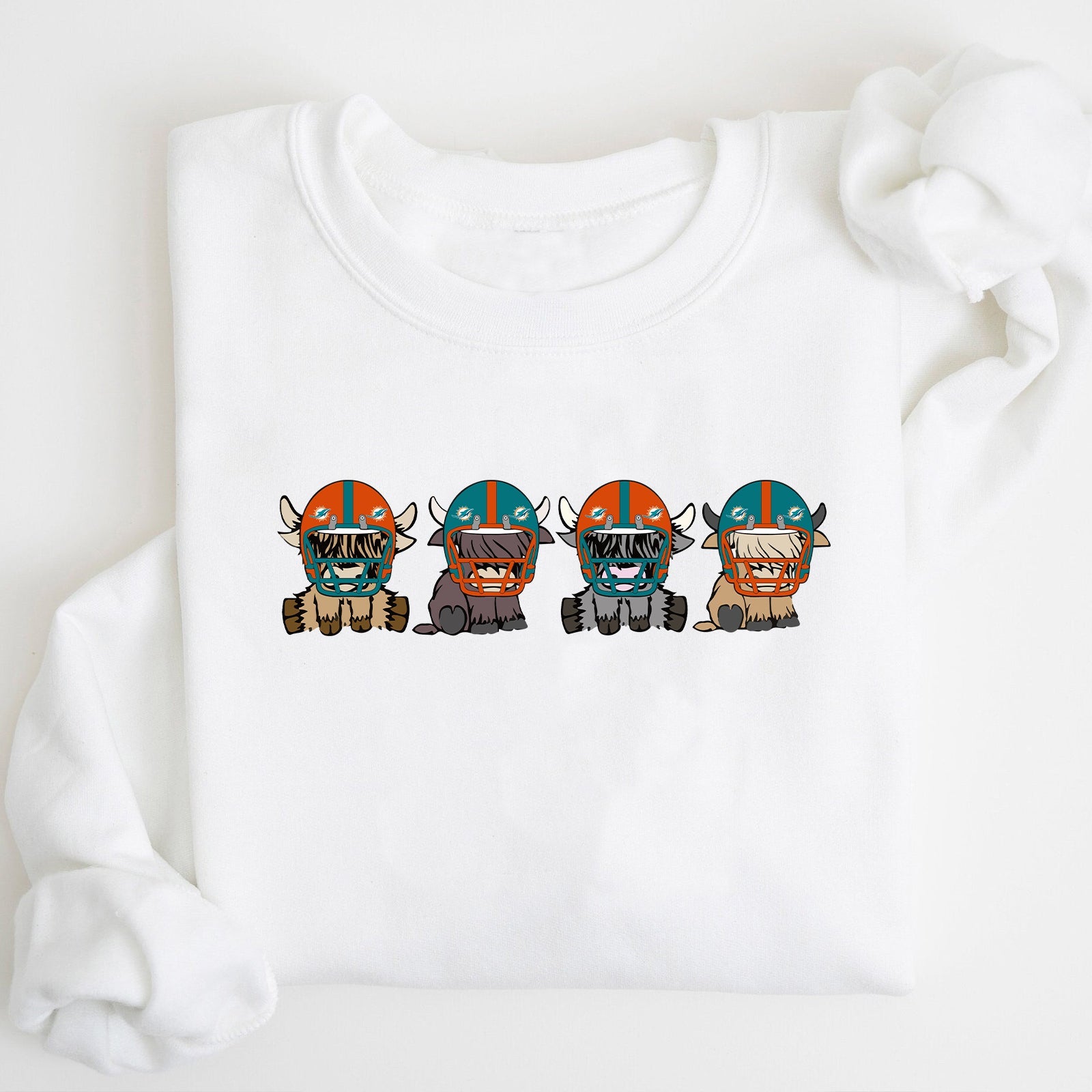 Miami Dolphins Highland Cow Football Team Football Lovers Gift Unisex Crewneck Hoodie Sweatshirt