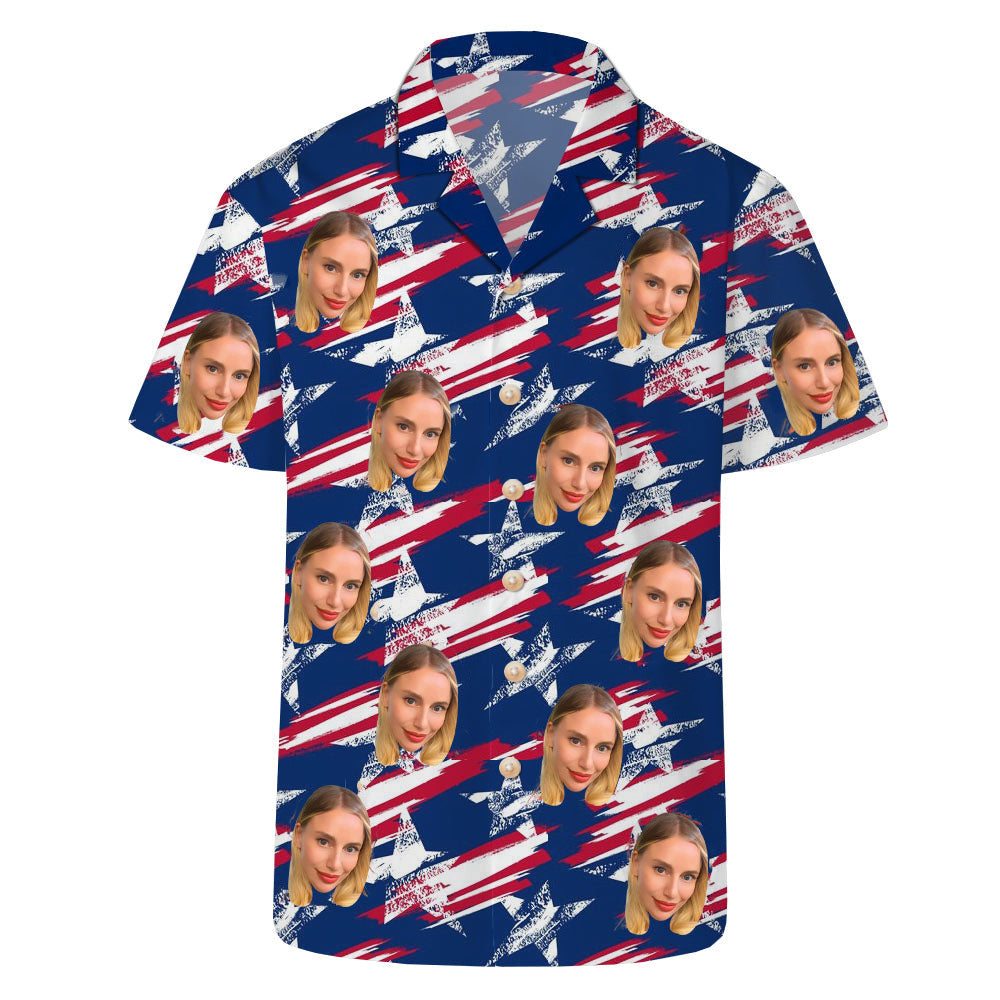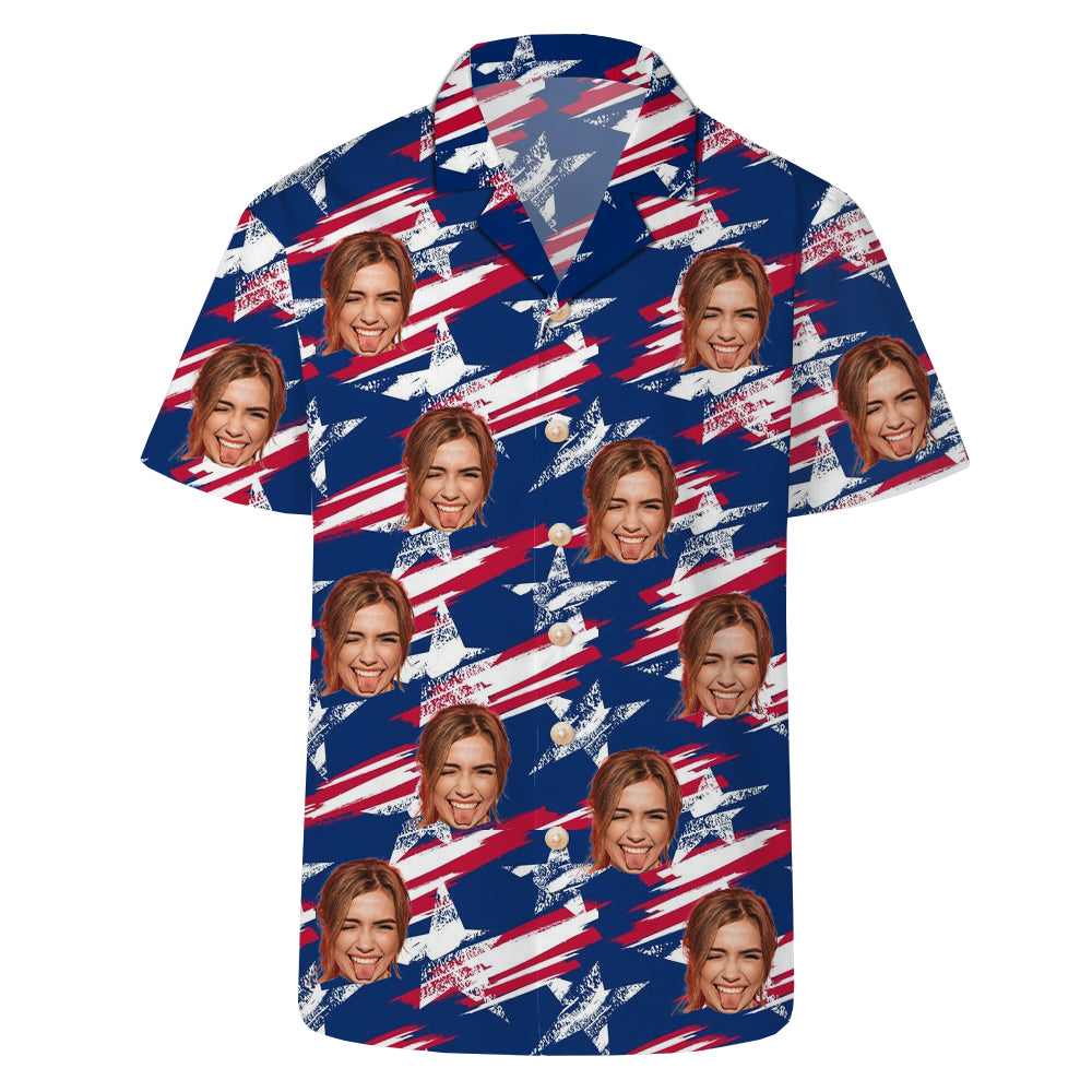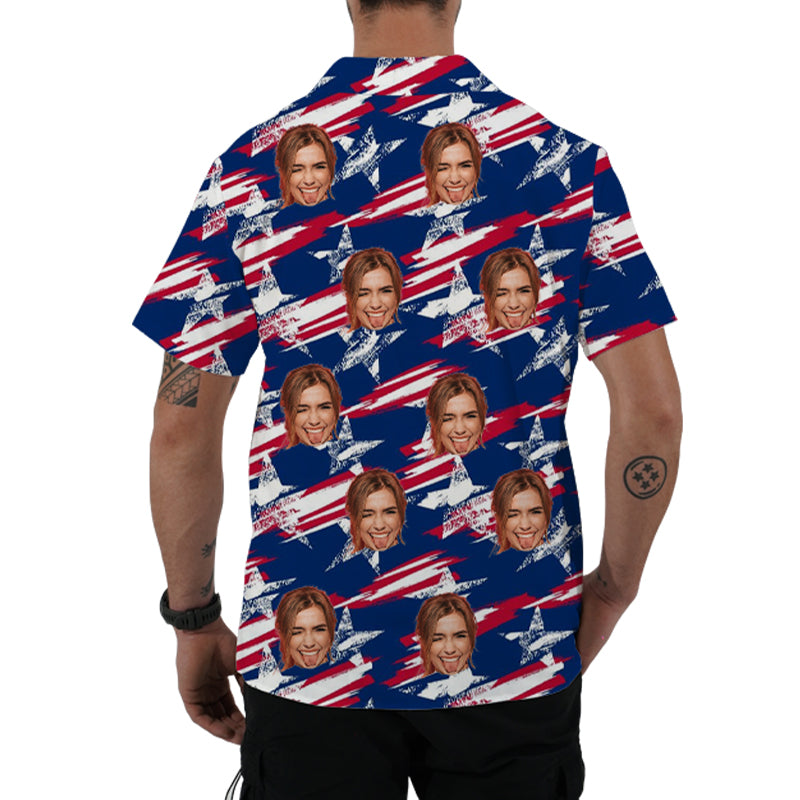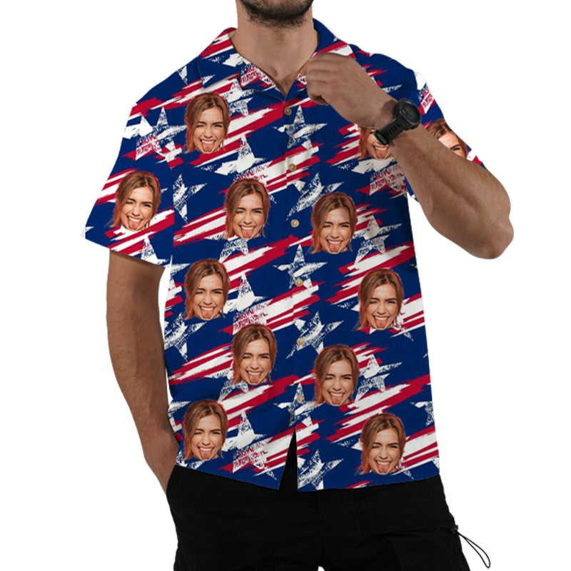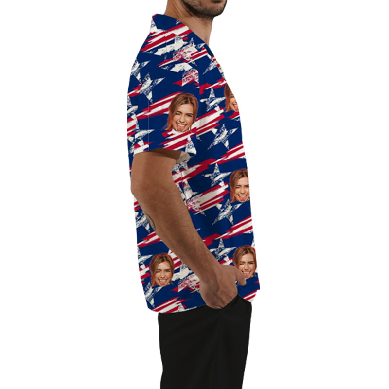 Navy Blue Hawaiian Shirt for Men July 4th Independence Day Outfit