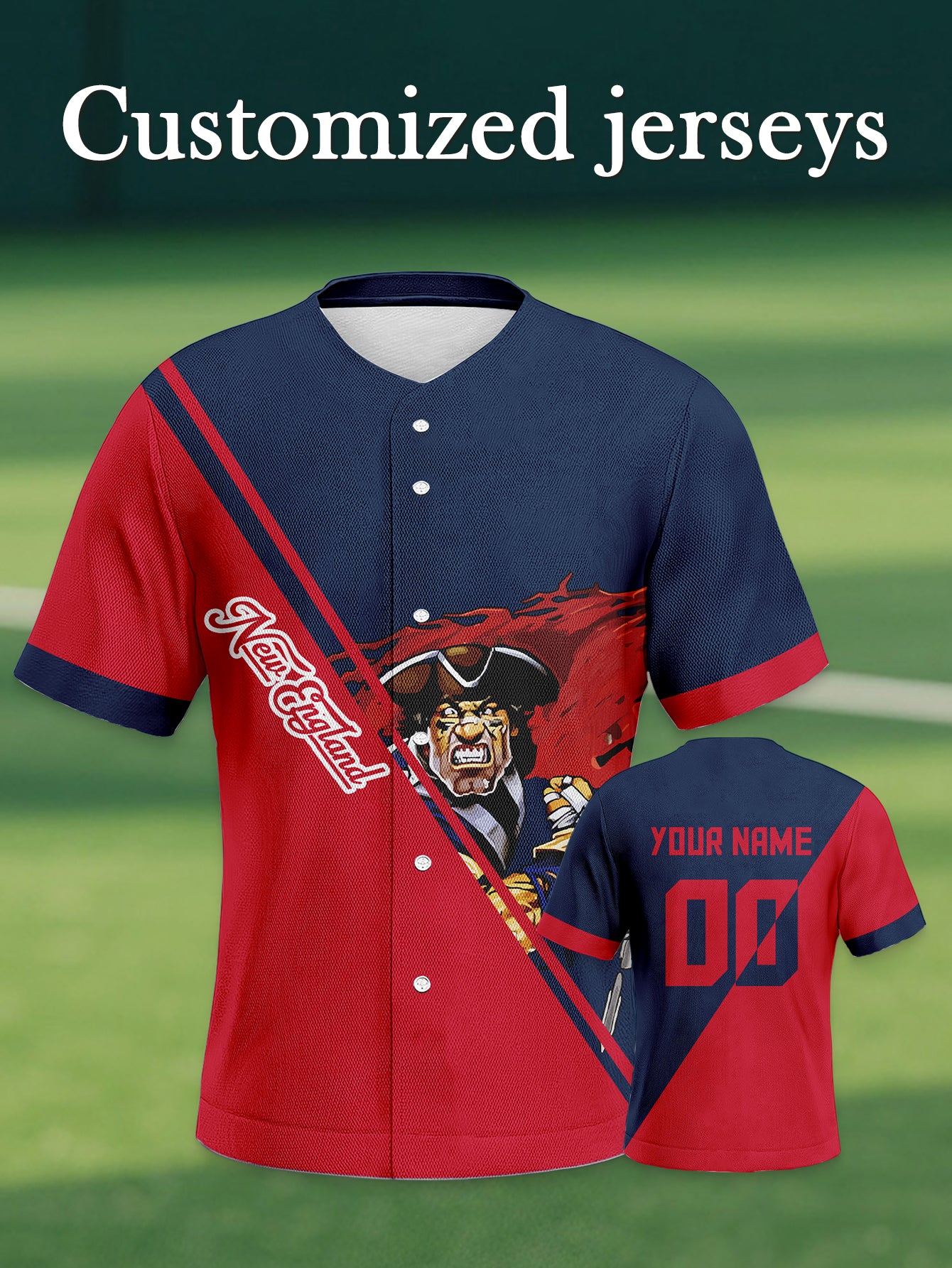 New England Patriots Fan Baseball Jersey - Personalized Name & Number