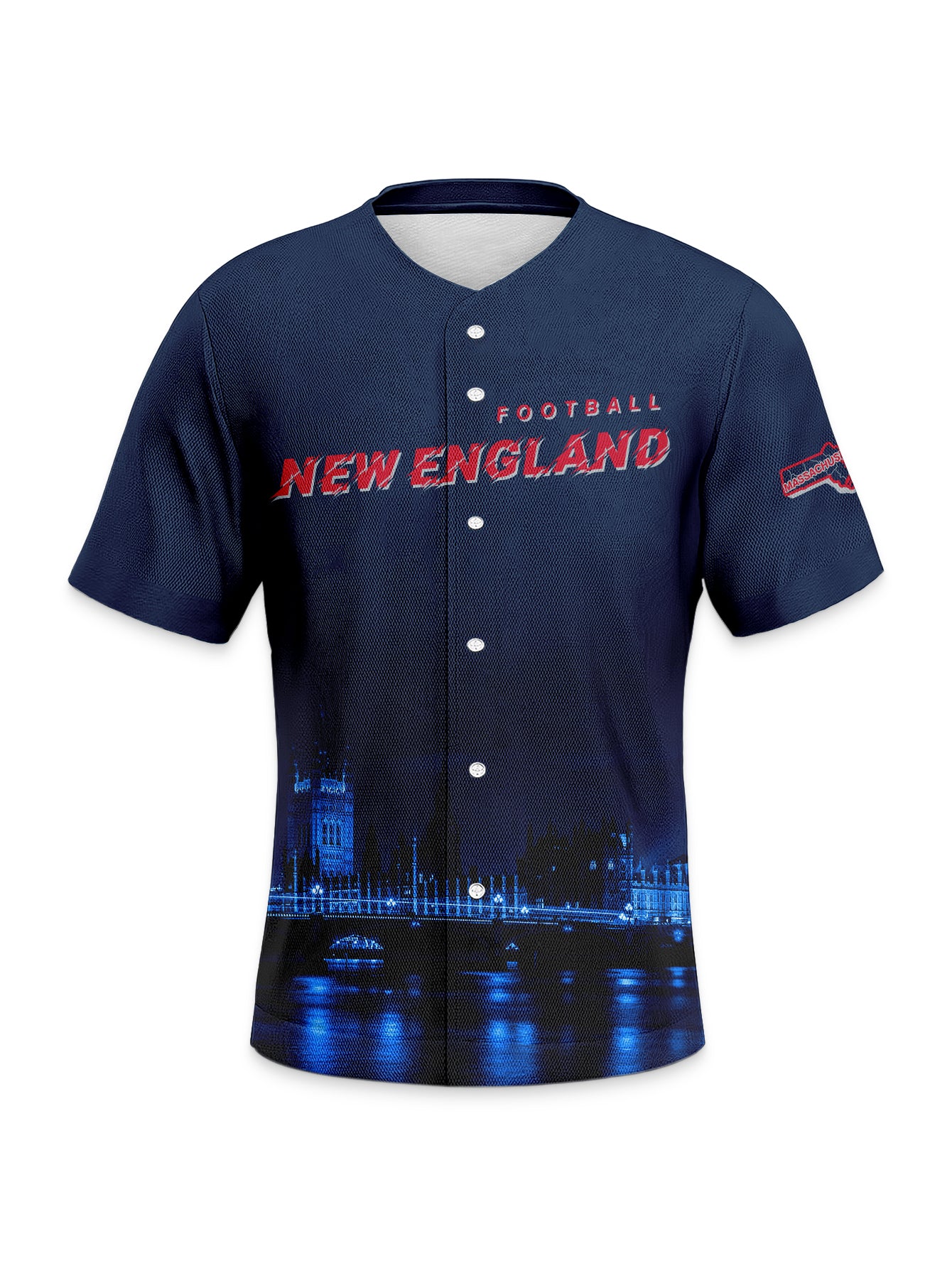 New England Patriots Navy-Red Baseball Top - Embroidered Jersey