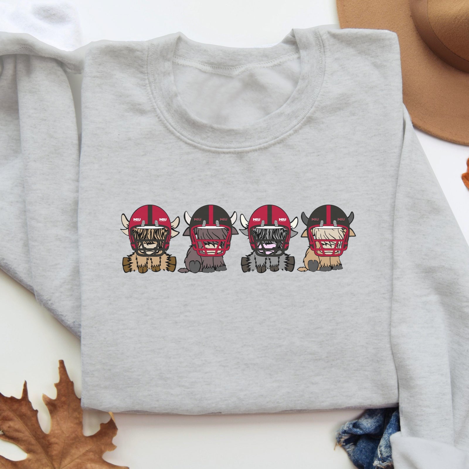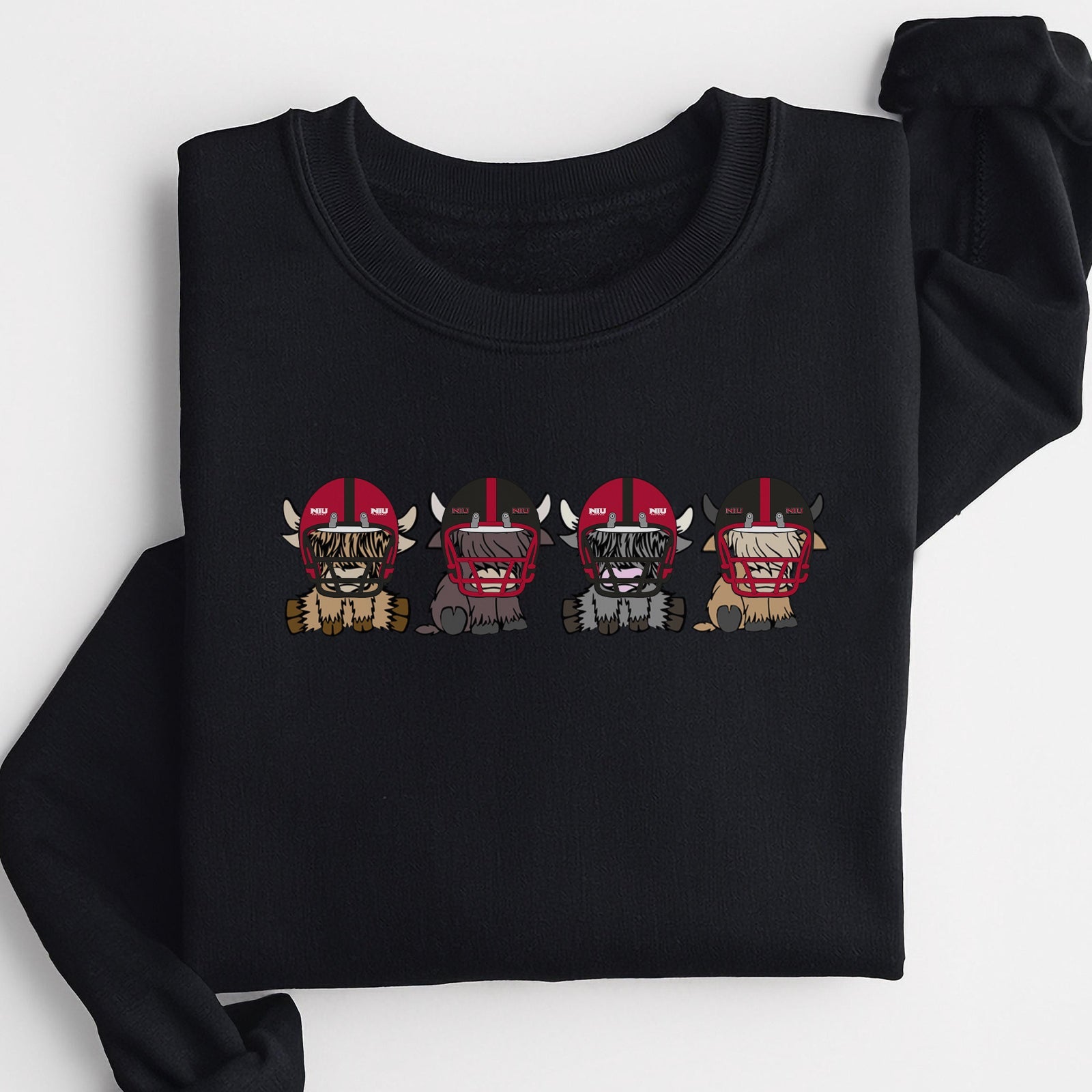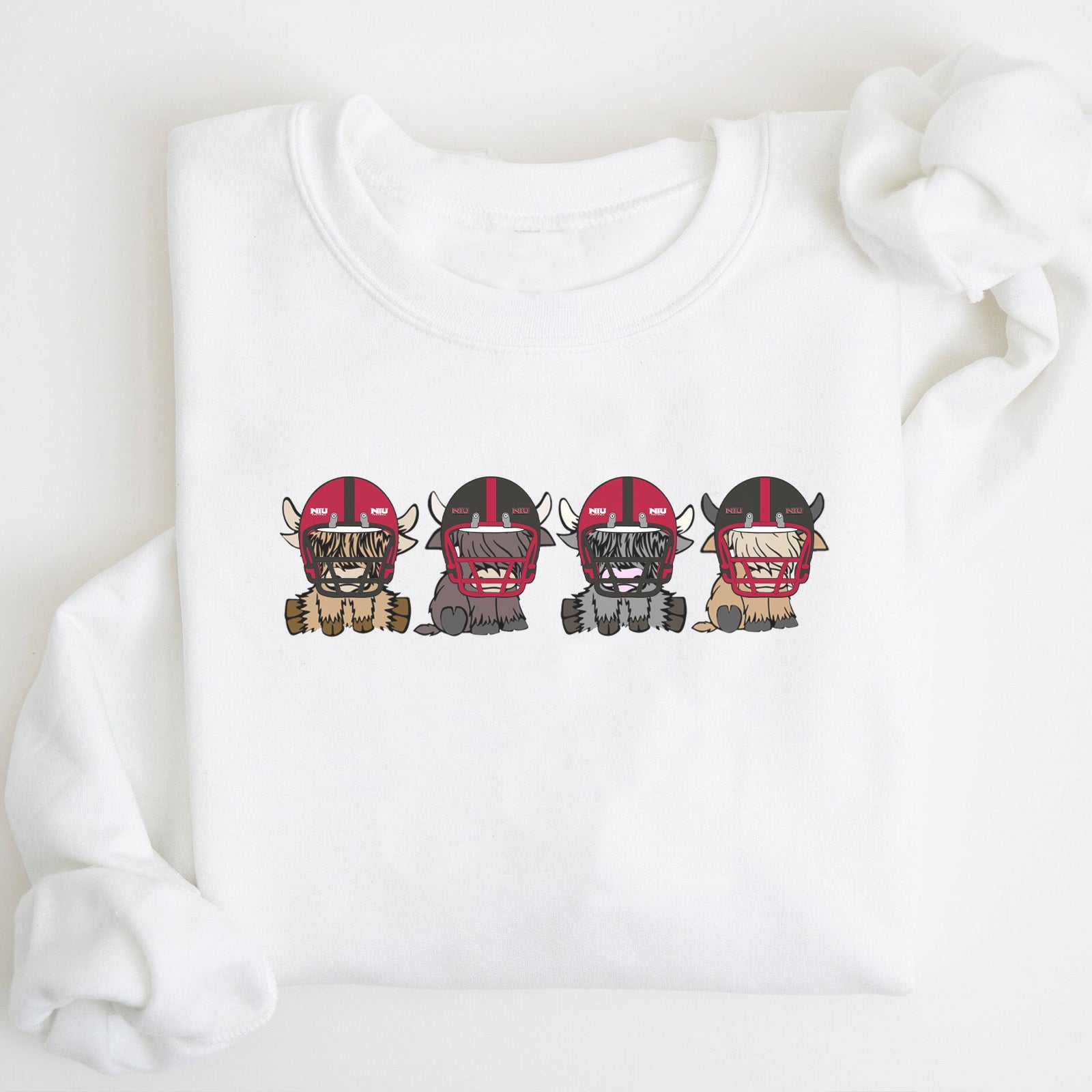 Northern Illinois Huskies Football Highland Cow Football Team Football Lovers Gift Unisex Crewneck Hoodie Sweatshirt