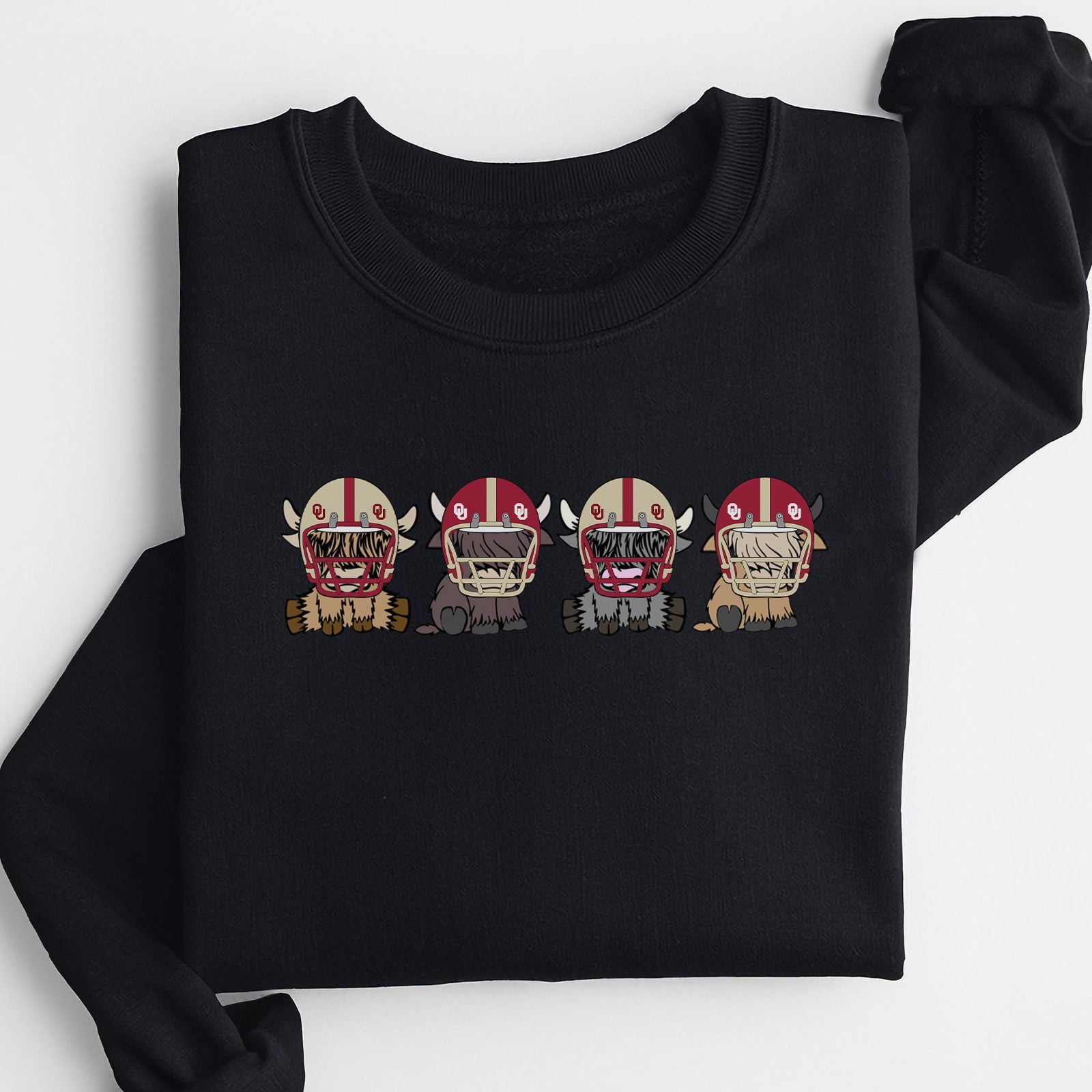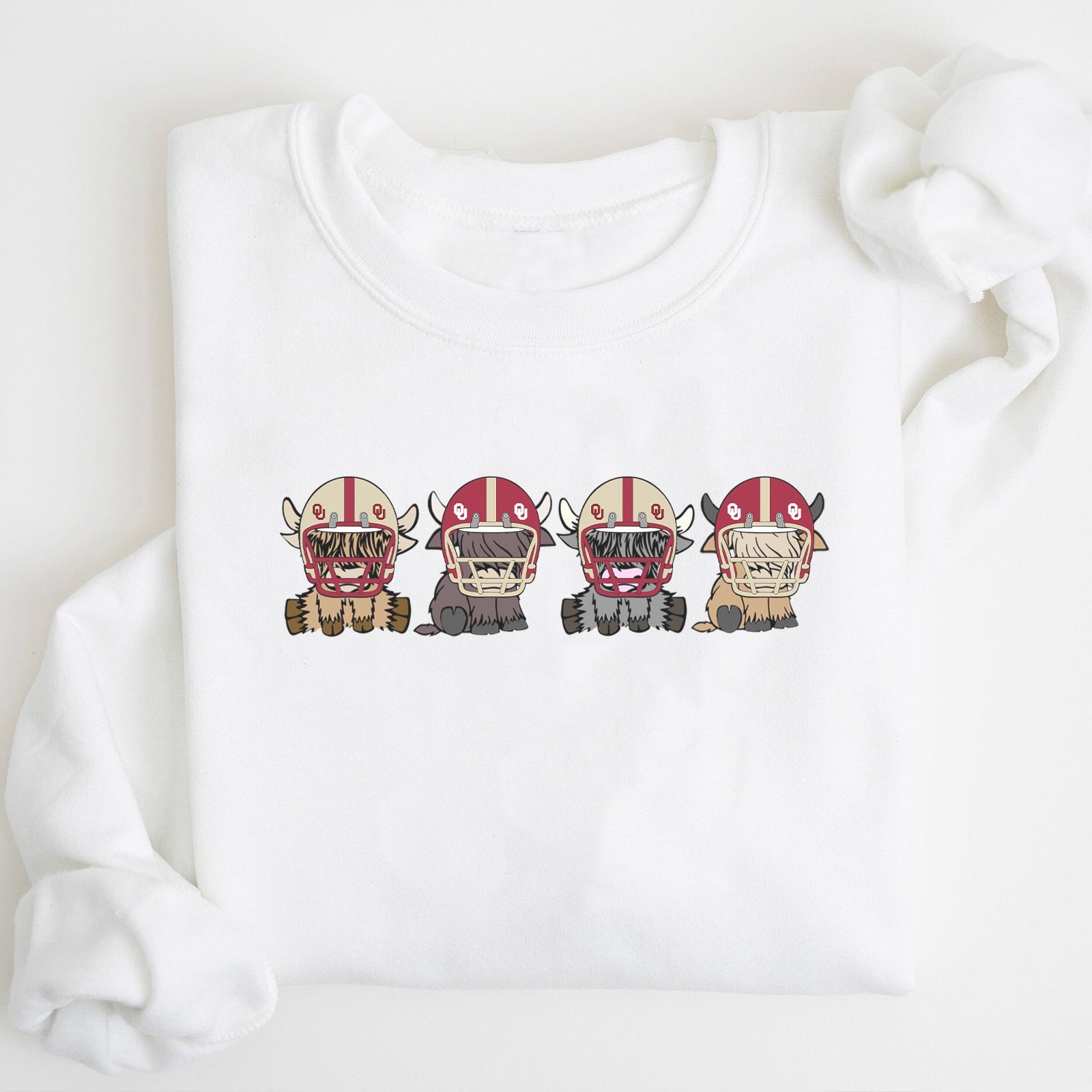 Oklahoma Sooners Football Highland Cow Football Team Football Lovers Gift Unisex Crewneck Hoodie Sweatshirt