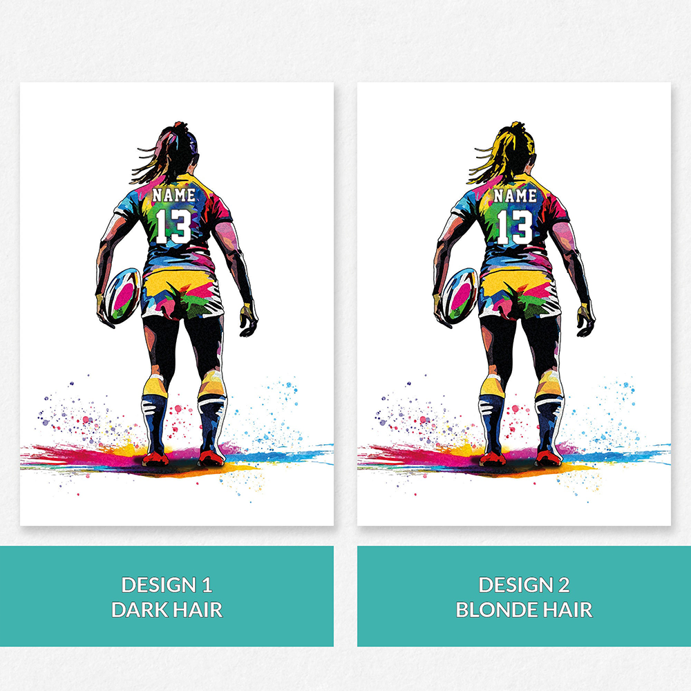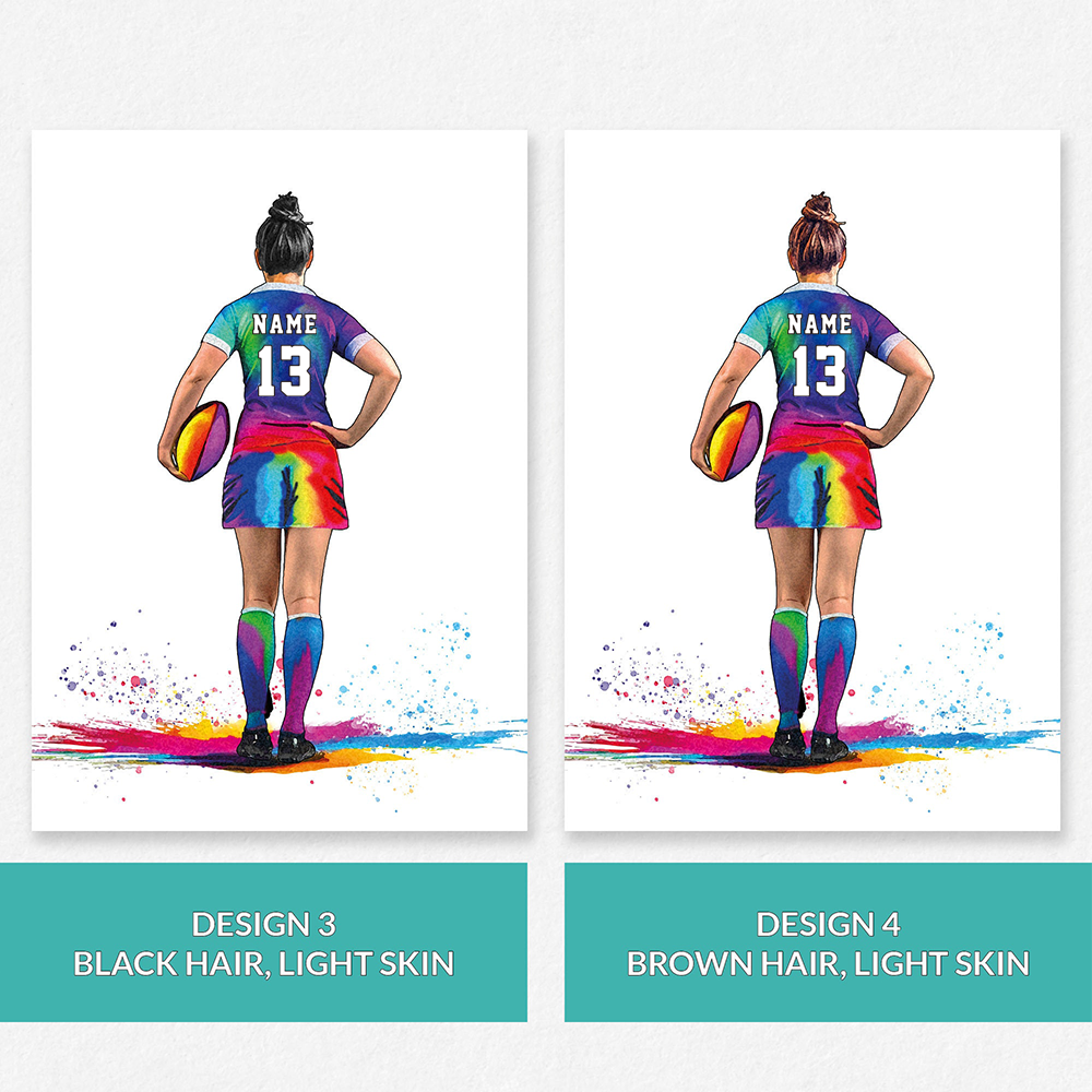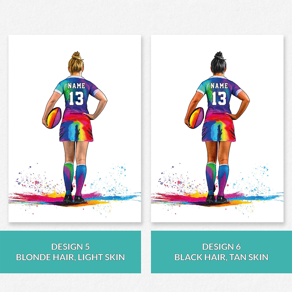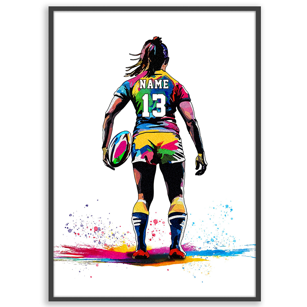 Personalised Girls Football Art Print | Female American Football Player | Wall Decoration Painting | Women's Rugby Gift | Birthday Gift