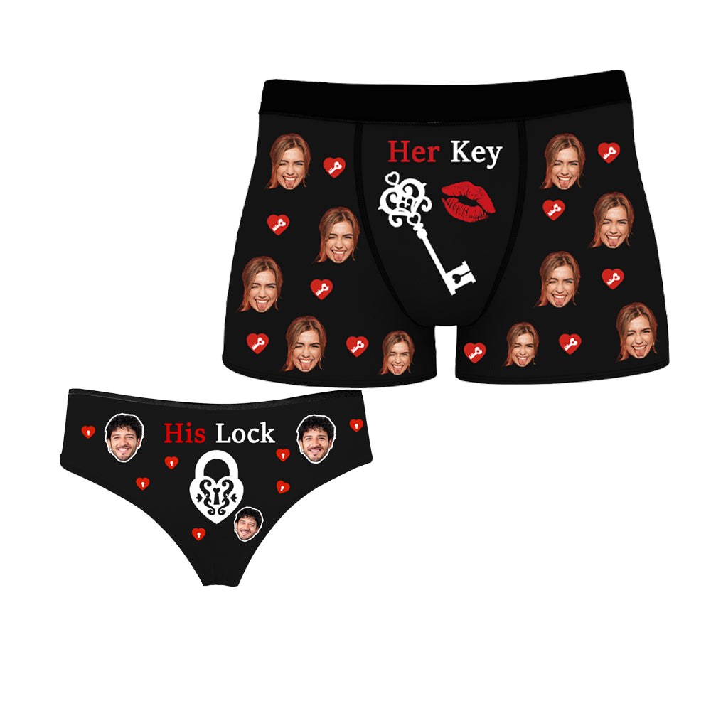 Personalized Couple Matching Underwear Sets Key Men's Boxer Women's Panties Gifts