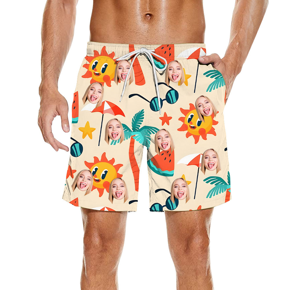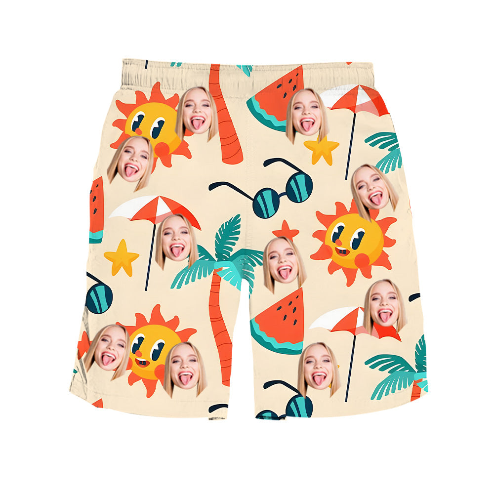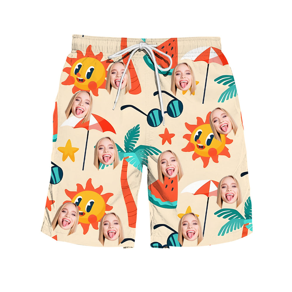 Personalized Face Beach Shorts Custom Tropical Print Summer Shorts